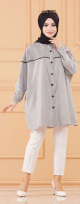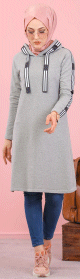 Sweatshirt long avec capuche style moderne décontracté et sport (Vetement voyage femme musulmane) - Couleur Gris - REF. 32850 (19.90 €) - En Promotion à 16.90 €