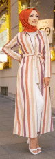 Robe chemise d'été longue à rayures (Vetement hijab chic pour femme) - Multi couleurs - REF. 32886 (25.00 €)