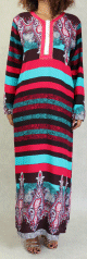 Robe orientale à rayures horizontales effet arc-en-ciel et mini pompons multicolores - Couleur Bleu nuit - REF. 31836 (26.90 €)
