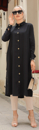 Chemise longue boutonnée nouvelle saison (Vêtement ample pour femme) - Couleur noir - REF. 34578 (24.90 €)