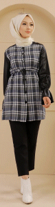 Tunique à carreaux et skaï pour femme (Vêtement Hijab - Collection) - Couleur bleu écru - REF. 35535 (19.90 €)