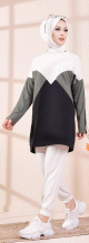 Tunique originale pour femme - Sweat-shirt tricolore - Couleur blanc noir et Kaki - REF. 37777 (19.90 €)