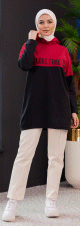 Tunique avec capuche (Vêtement moderne pour hijab - Boutique française en ligne) - Couleur rouge - REF. 38315 (19.90 €)