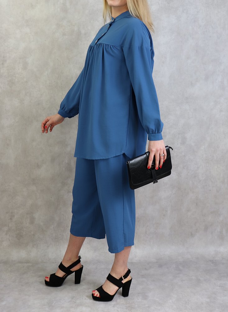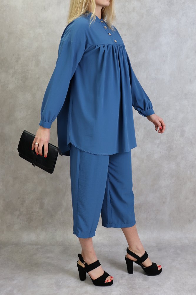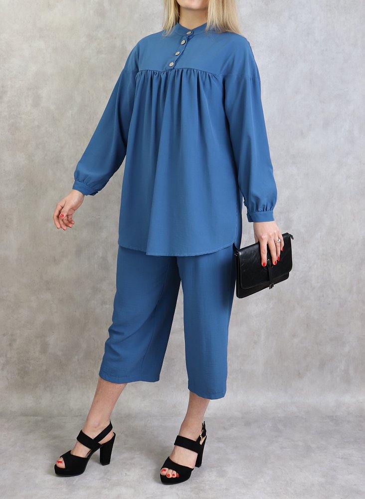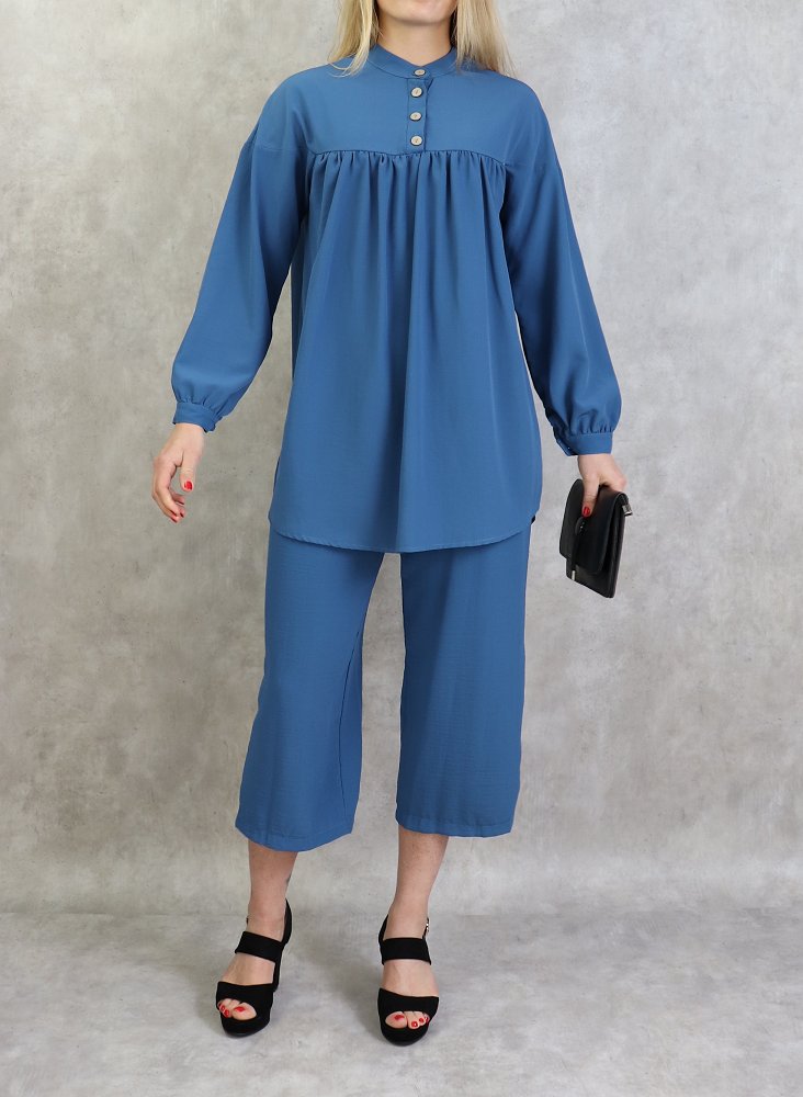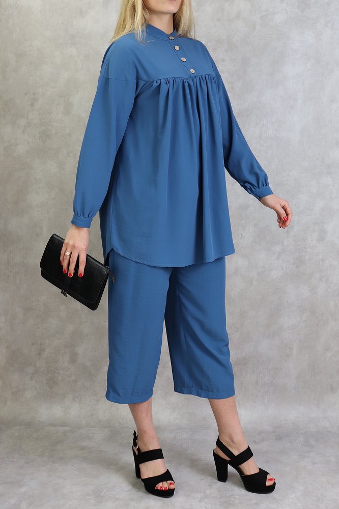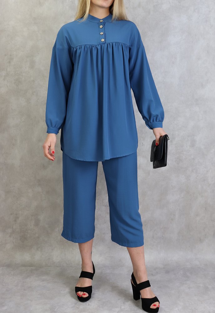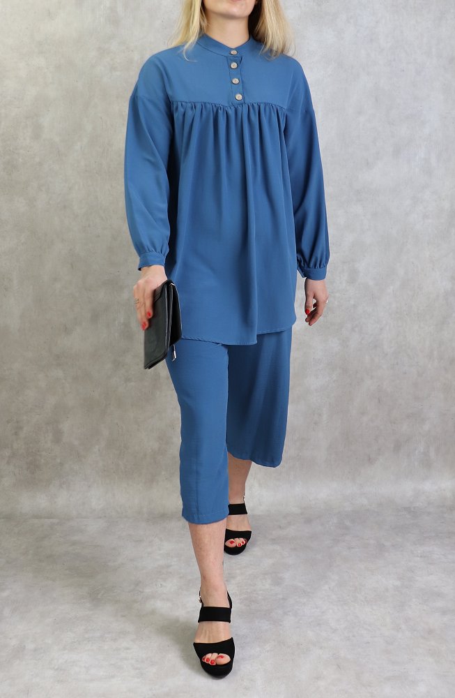 Ensemble tunique à boutons et pantalon assorti pour femme - Couleur bleu indigo - REF. 36015 (36.90 €)