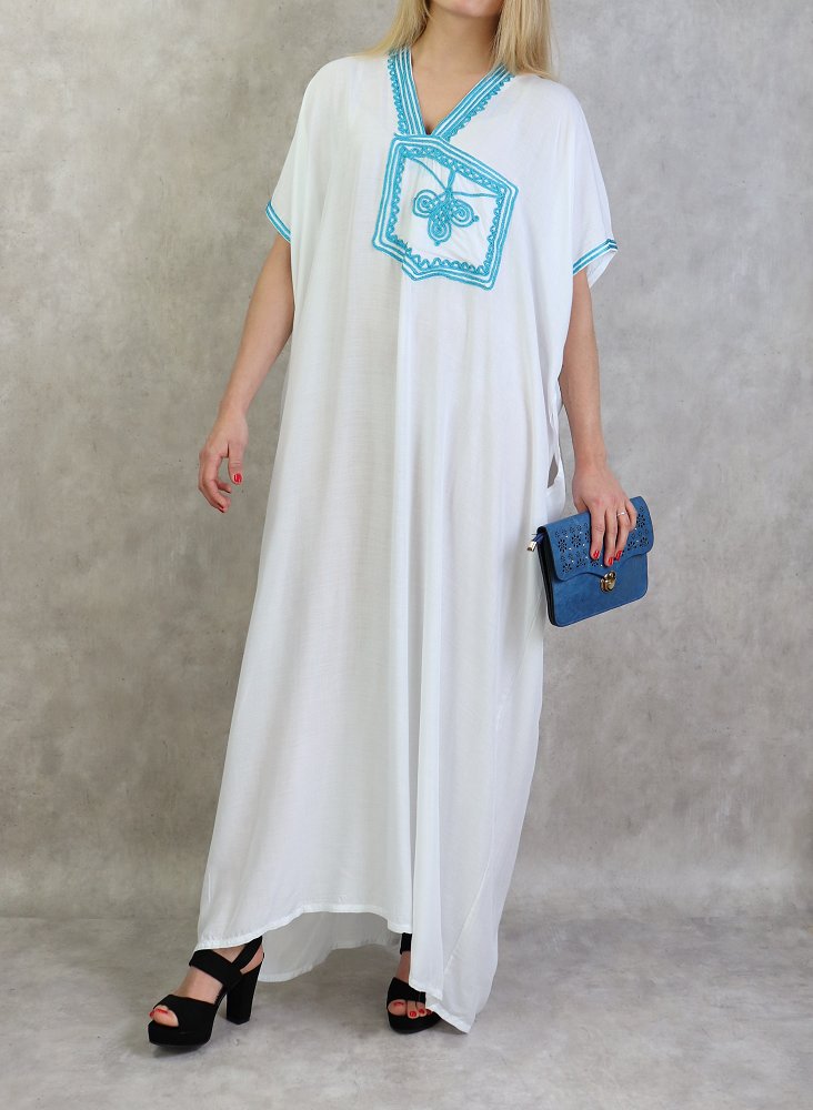 Belle gandoura traditionnelle marocaine, entièrement brodée à la main par des artisans marocains qualifiés.