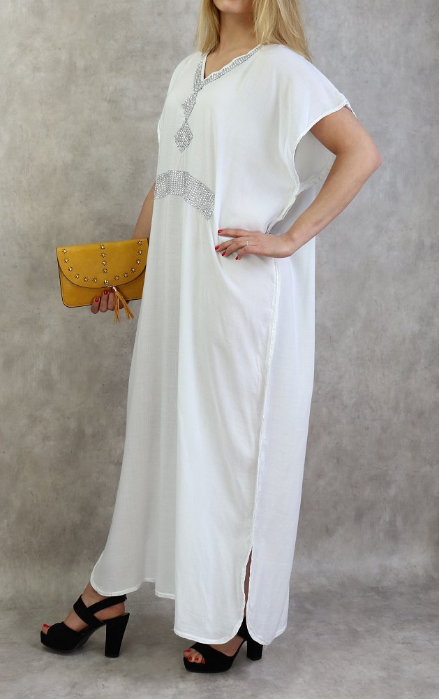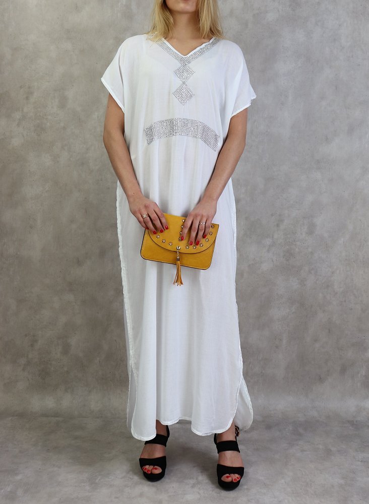 Sac artisanal marocain en cuir de couleur blanche avec motifs cousus - Pour fillettes - REF. 17544 (12.00 €)