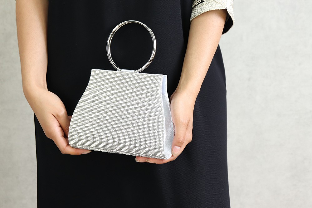 Sac à main femme entièrement recouvert de strass, anse métallique ronde pour soirée, mariage et fête - Couleur argenté Vetement & Accessoire