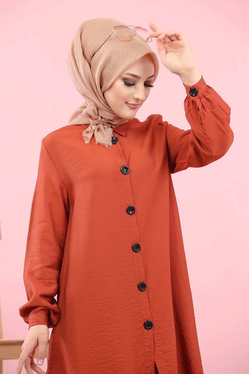 Tunique chemise longue décoration boutons pour femme - Couleur Rouille - REF. 30284 (25.00 €) - En Promotion à 19.90 €