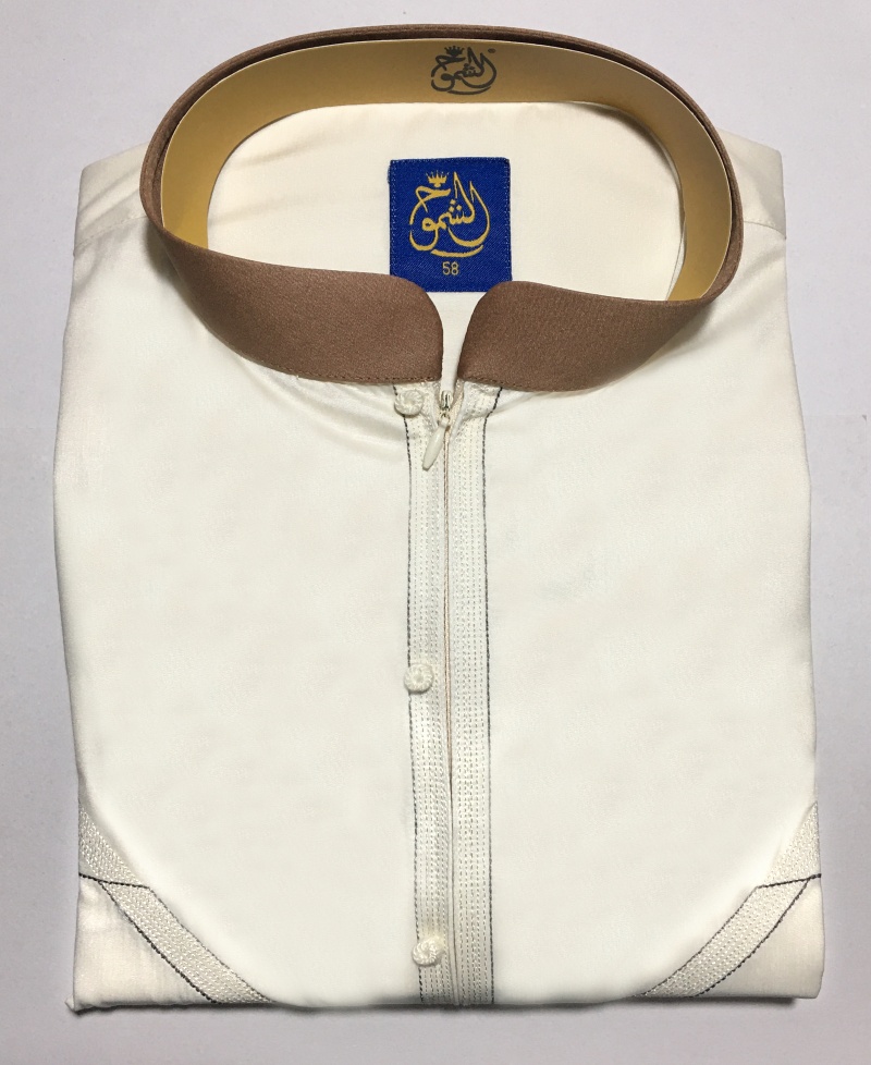 Qamis traditionnel élégant de qualité supérieure couleur blanc cassé et camel - REF. 32204 (49.00 €)