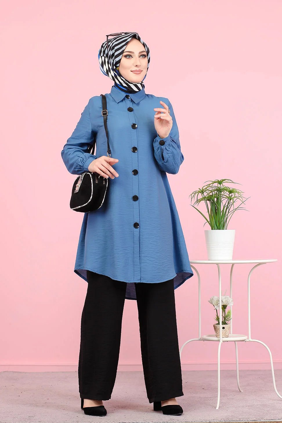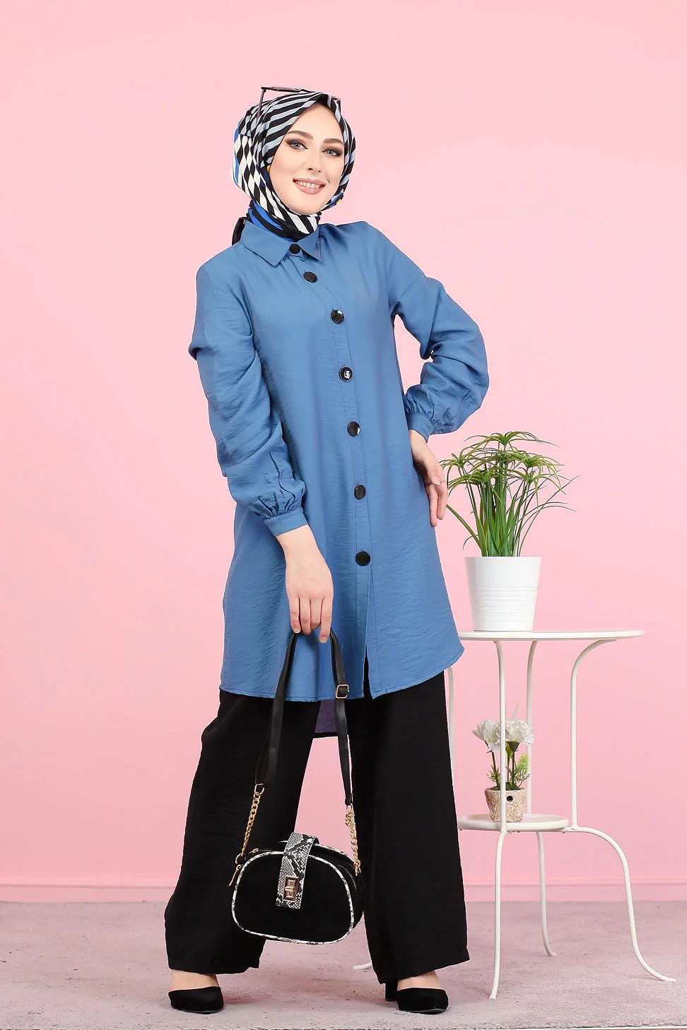 Tunique-Chemise ample boutonnée (Vetement décontracté femme voilée) - Couleur menthe - REF. 33196 (19.90 €)