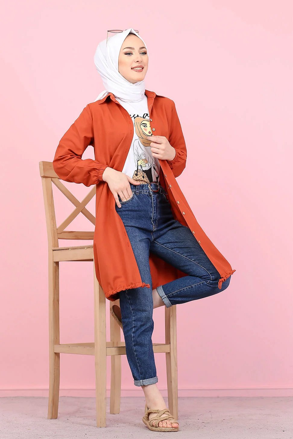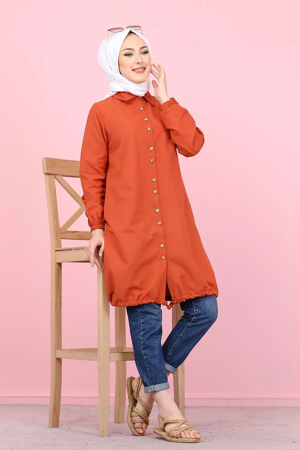Tunique-Chemise ample boutonnée (Vetement femme musulmane France) - Couleur brique Vetement & Accessoire