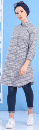 Surchemise ample - Tunique à carreaux (Vêtement Hijab moderne) - Rayures de couleur kaki - REF. 35323 (24.90 €)
