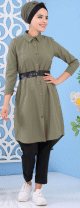 Tunique chemise longue pour femme - Couleur Kaki - REF. 30287 (25.00 €) - En Promotion à 19.90 €