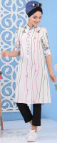 Tunique longue blanche imprimée motifs colorés en viscose pour femme - REF. 30563 (29.00 €)