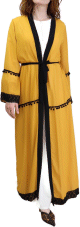 Gilet Veste long col châle manches à froufrou pour femme (Look Hijabista et Modest Fashion) - Couleur moutarde - REF. 33933 (25.00 €)