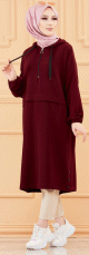Tunique ample avec capuche (Tenue style sport pour femme musulmane) - Couleur bordeaux - REF. 36188 (28.00 €)