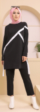 Ensemble décontracté tunique et pantalon pour femme (Vêtement moderne - Collection 2025) - Couleur blanc noir - REF. 37742 (29.90 €)
