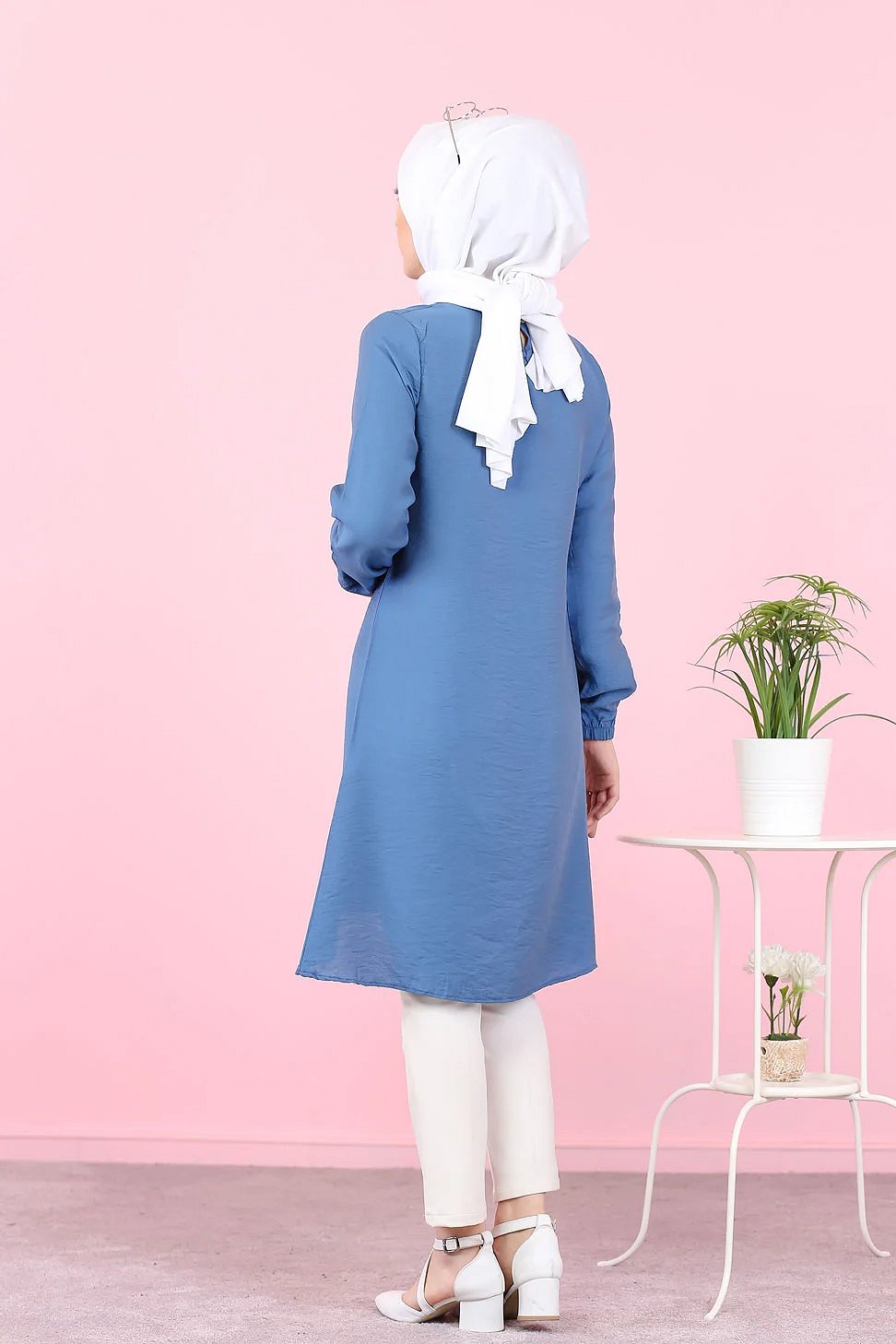 Chemise longue et ample pour femme (Vetement hijab tendance) - Couleur rose poudré - REF. 35639 (28.00 €) - En Promotion à 19.90 €