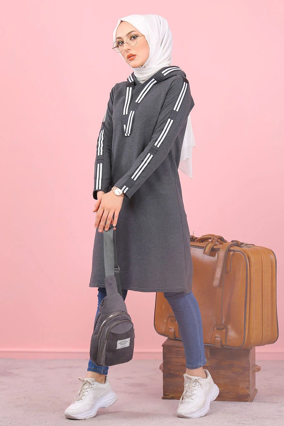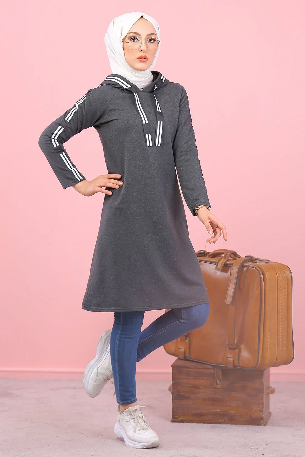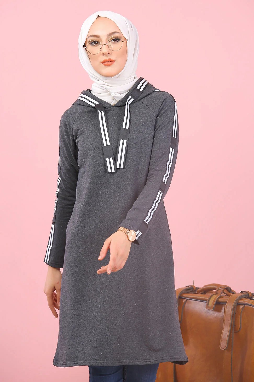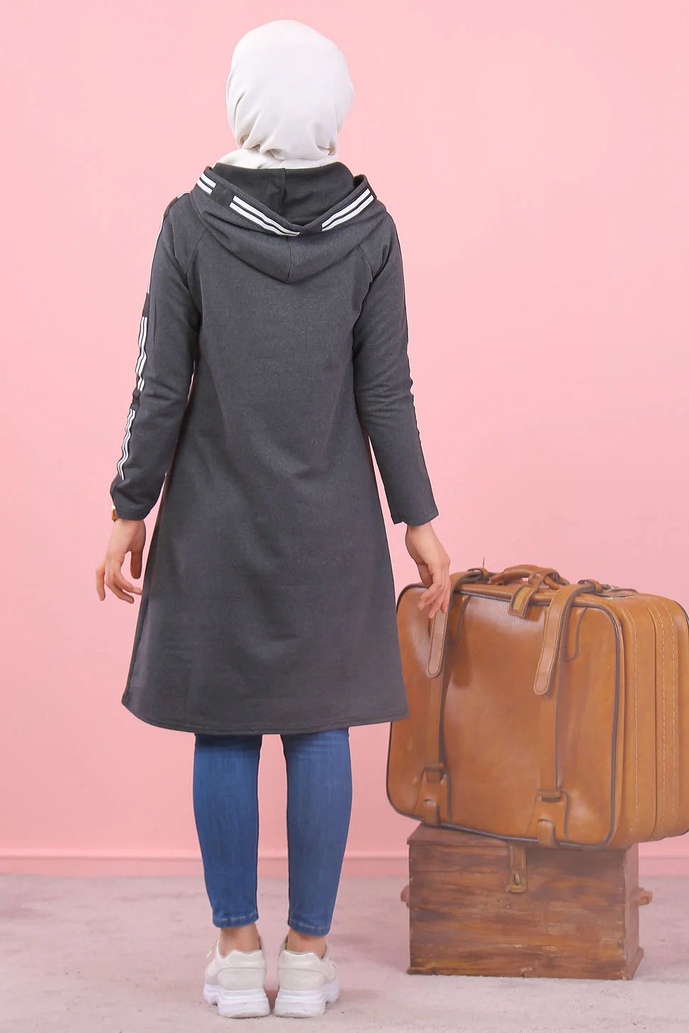 Sweat long sport femme avec capuche (Vetement moderne hijab) - Couleur Gris anthracite Vetement & Accessoire