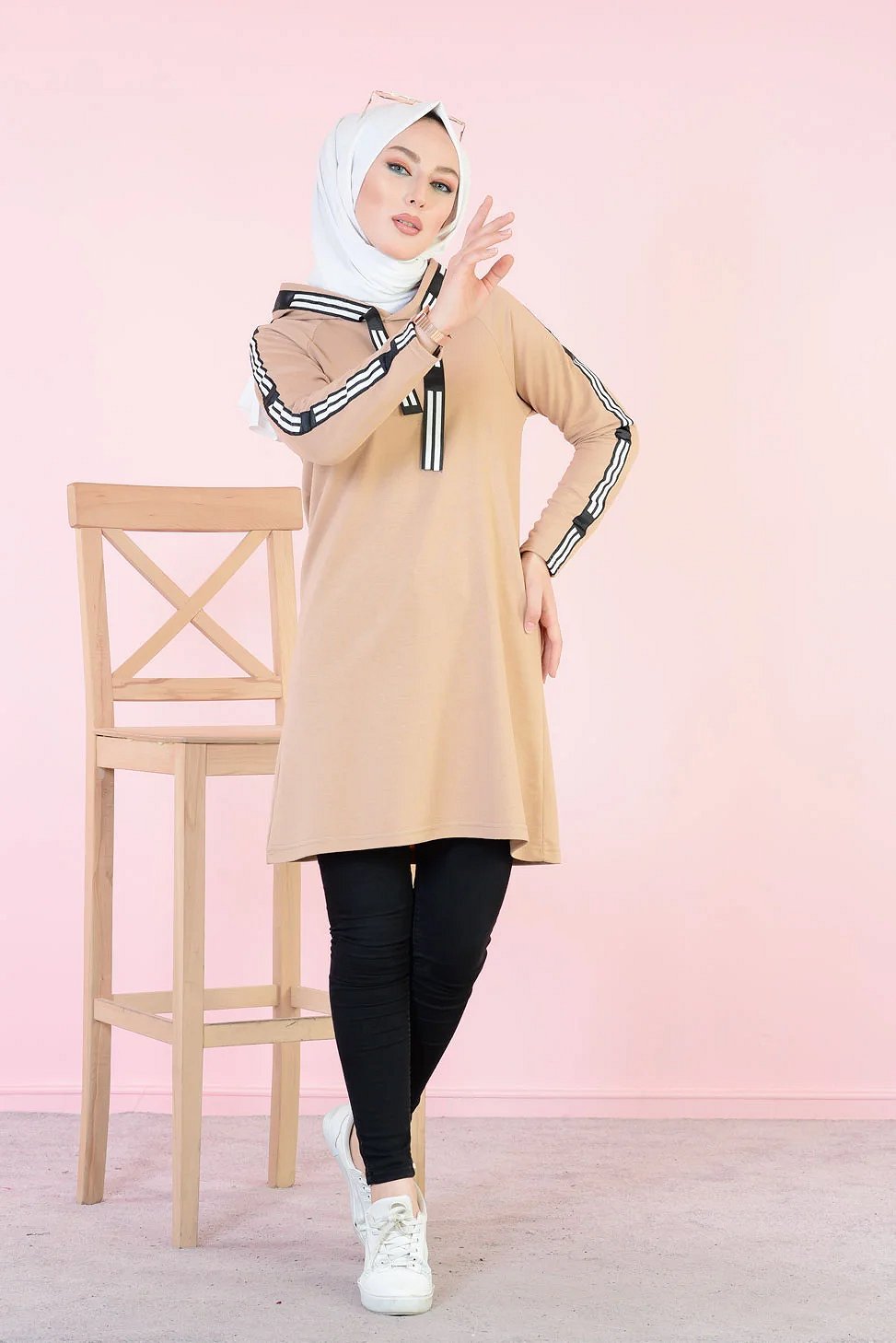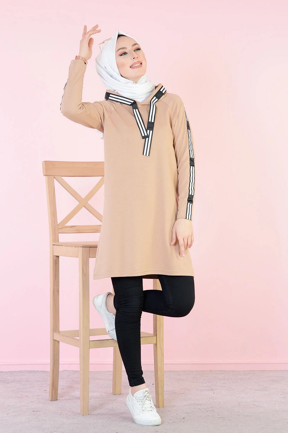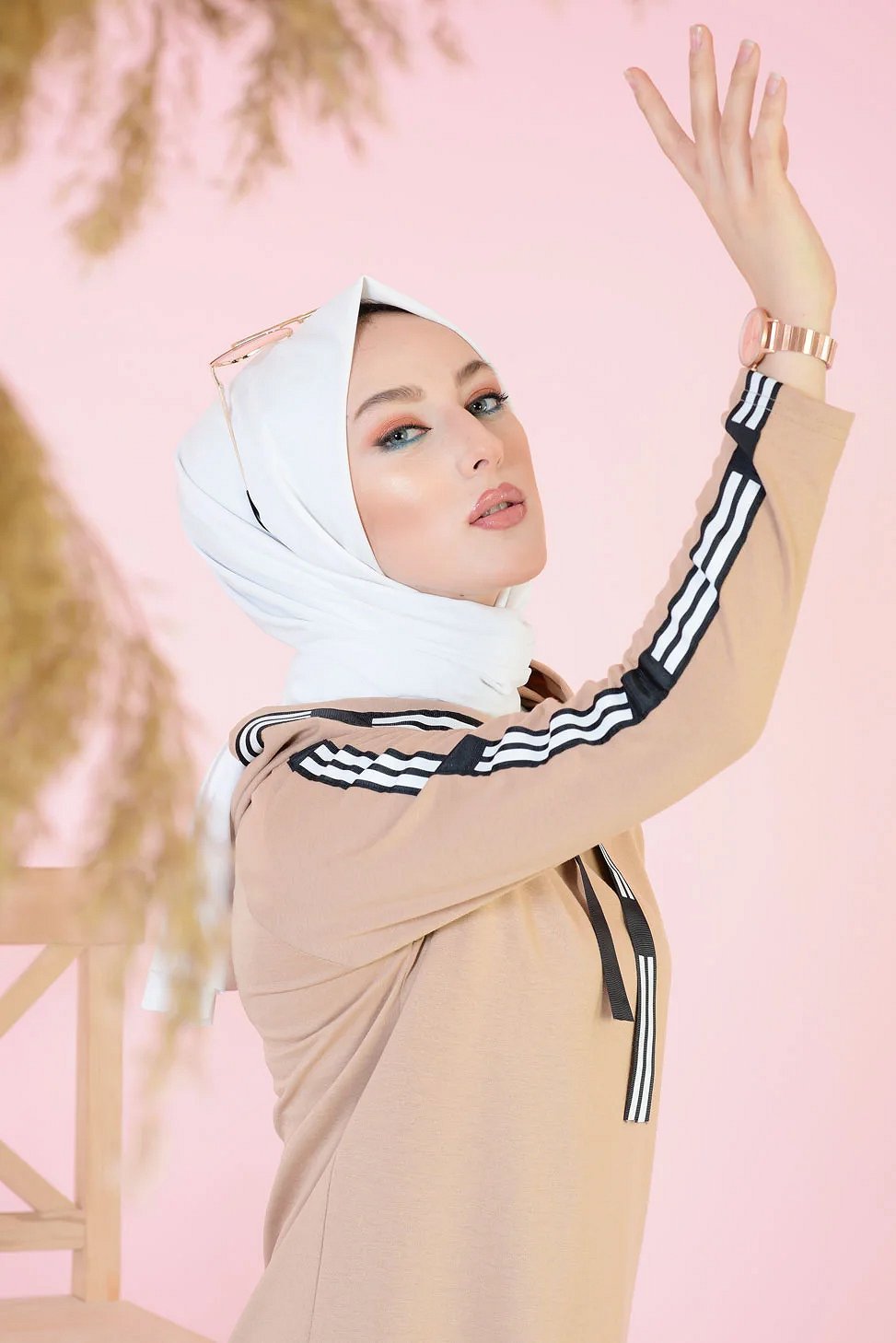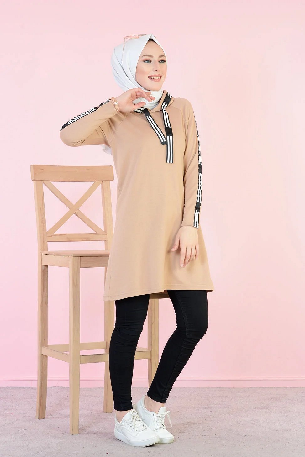 Sweat long sport femme avec capuche (Tenue décontractée femme voilée) - Couleur Sable Vetement & Accessoire