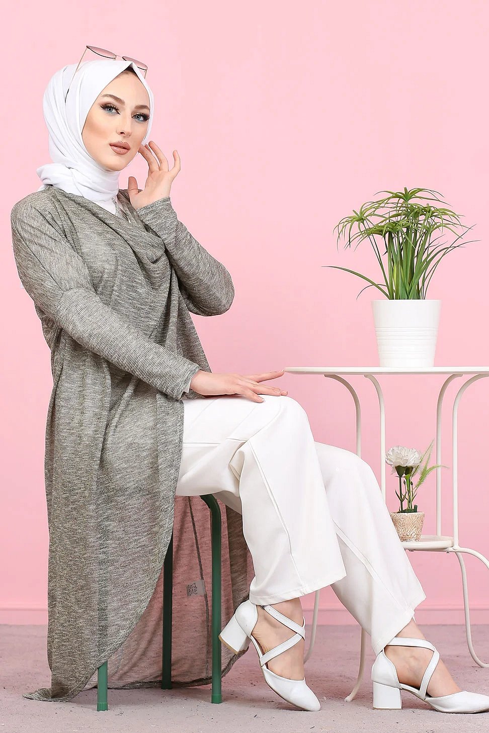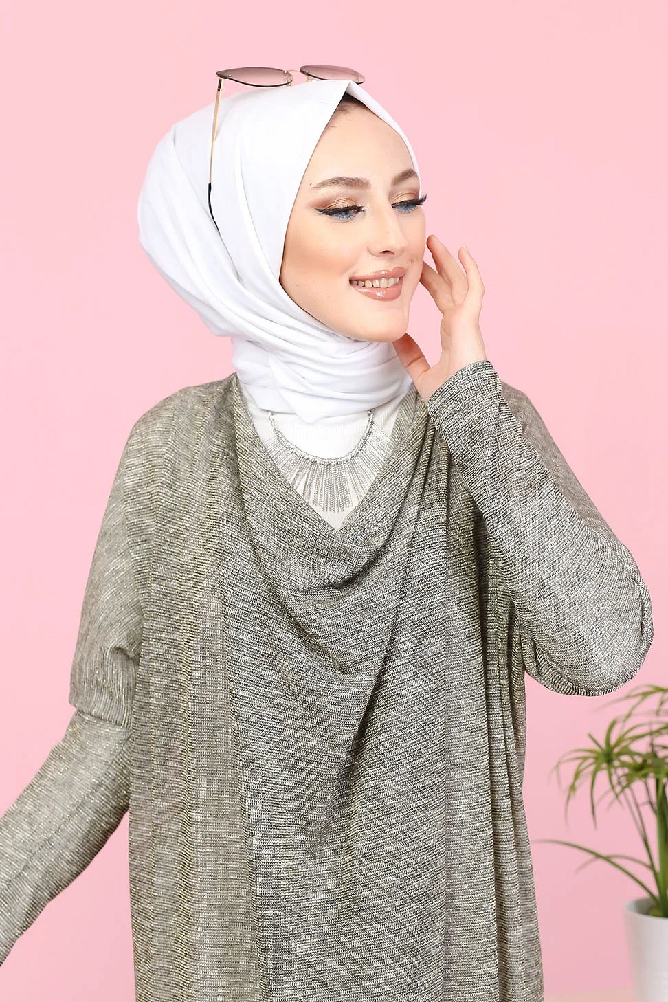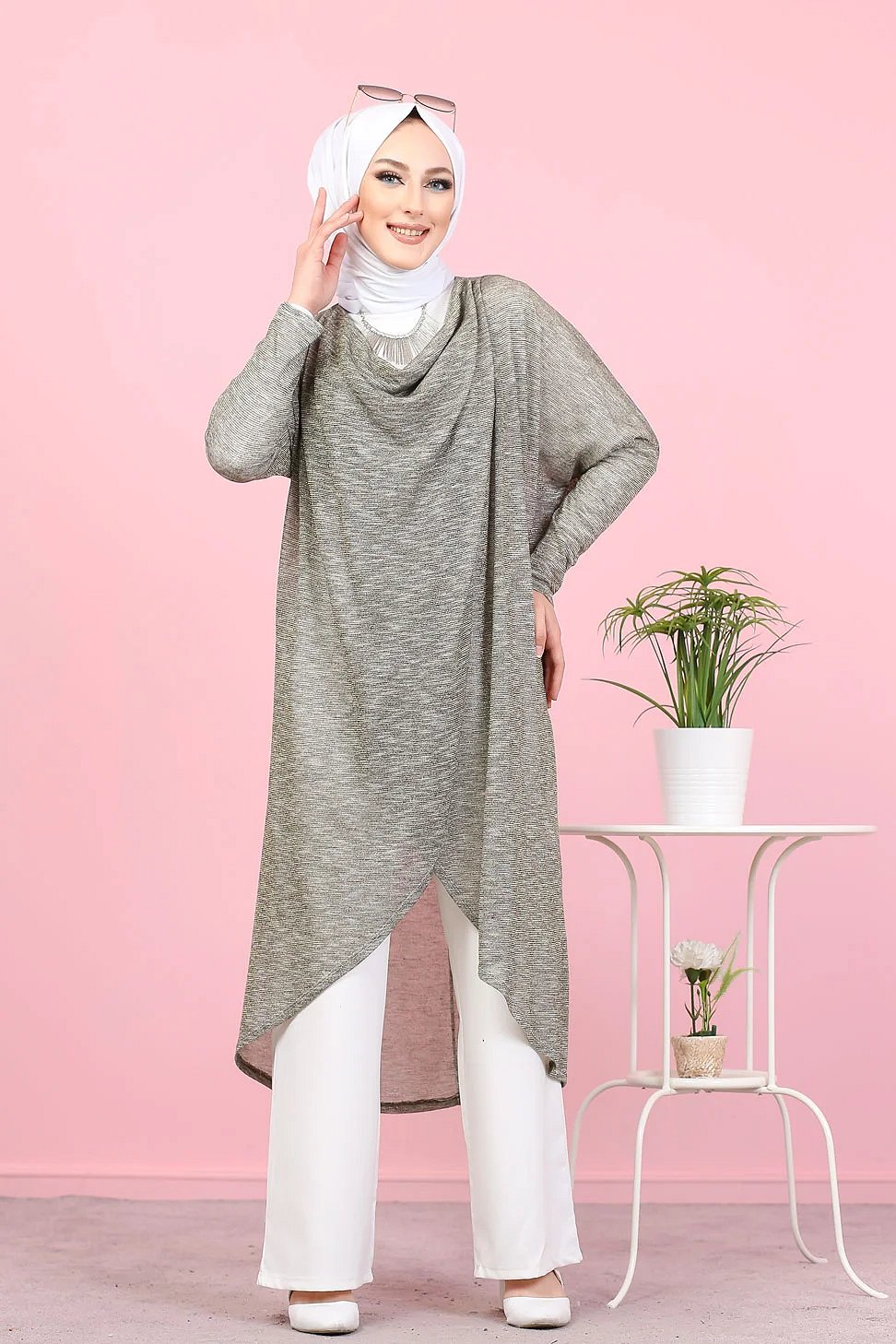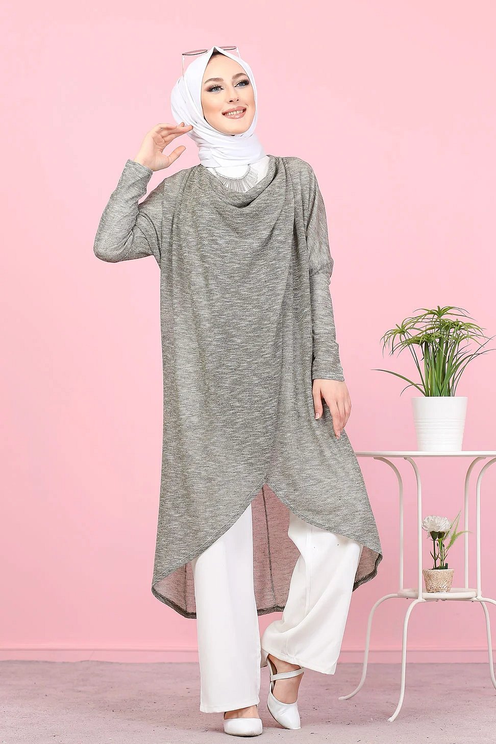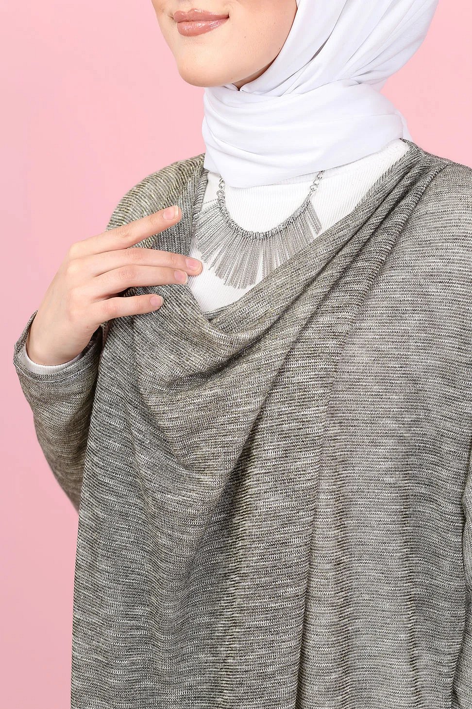Tunique ample style décontracté et sport (Sweat-shirt Hijab moderne) - Couleur gris clair - REF. 35501 (25.00 €) - En Promotion à 19.90 €