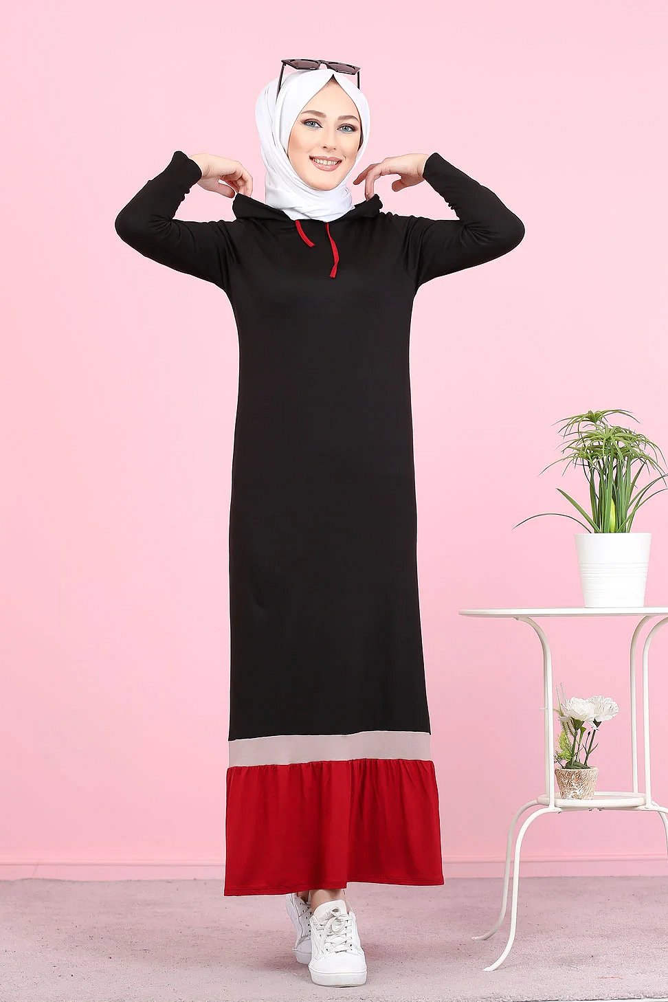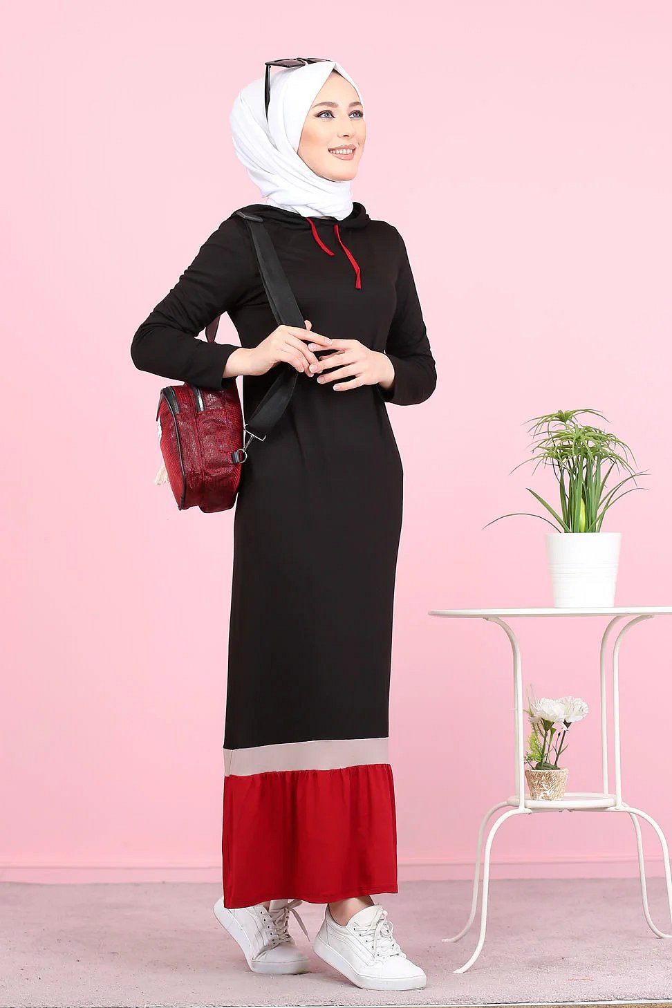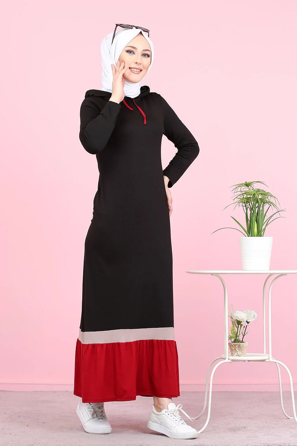 Robe longue avec capuche style sportswear (Vetement Hijab) - Couleur noir et rouge Vetement & Accessoire