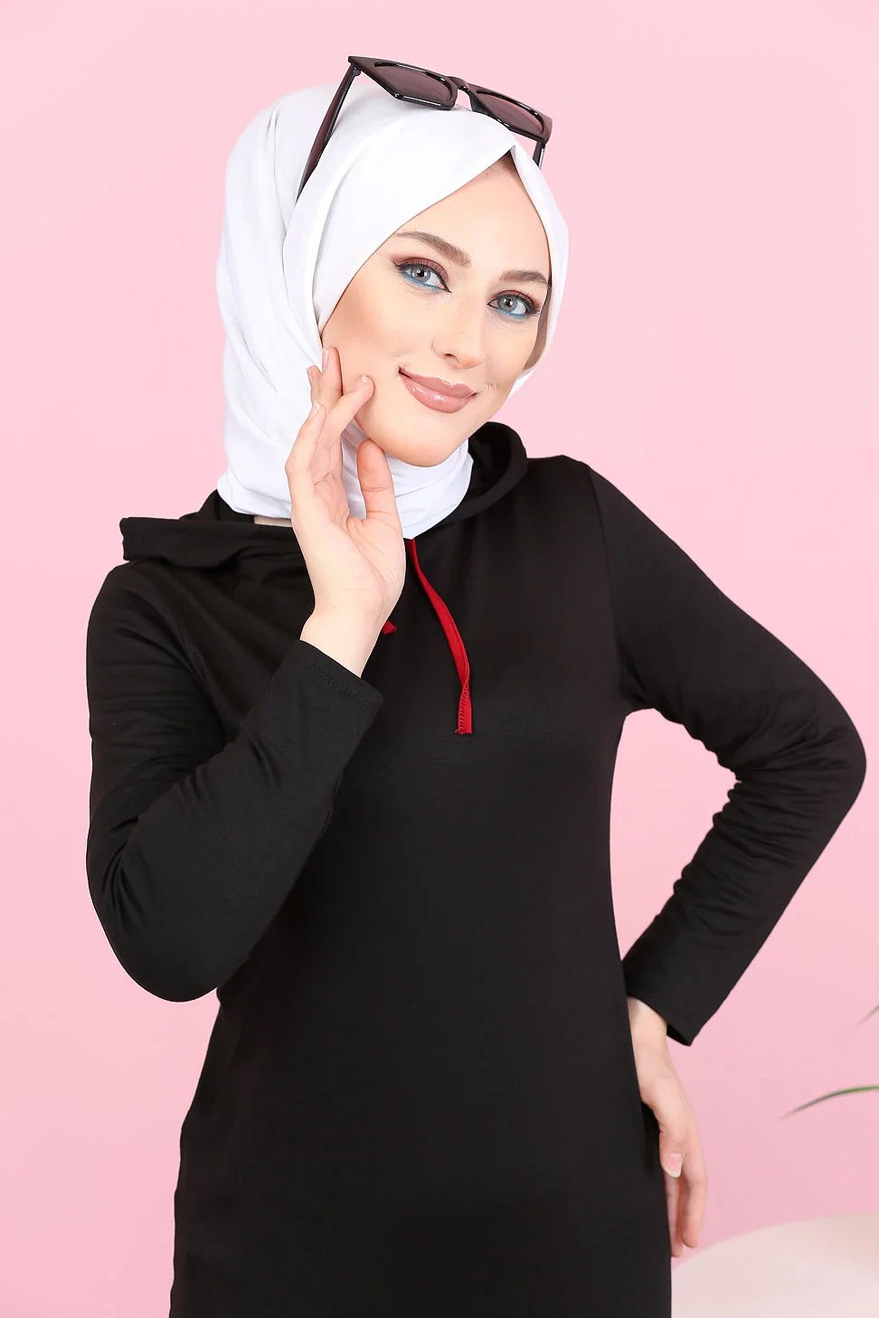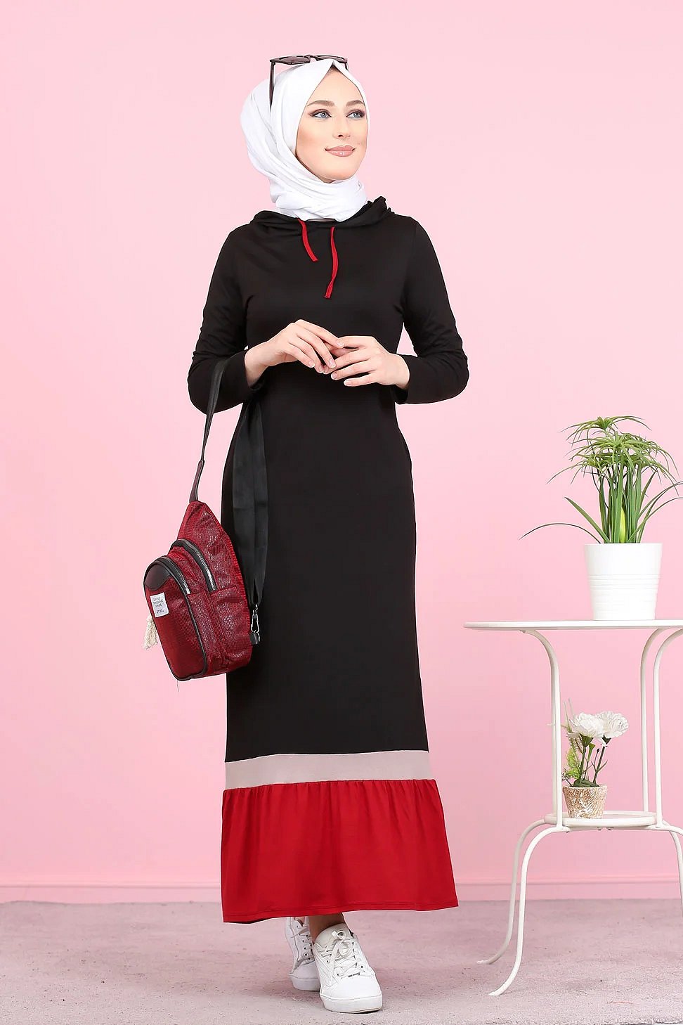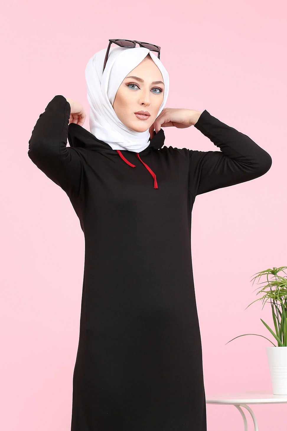 Robe longue avec capuche style sportswear (Vetement Hijab) - Couleur noir et rouge Vetement & Accessoire