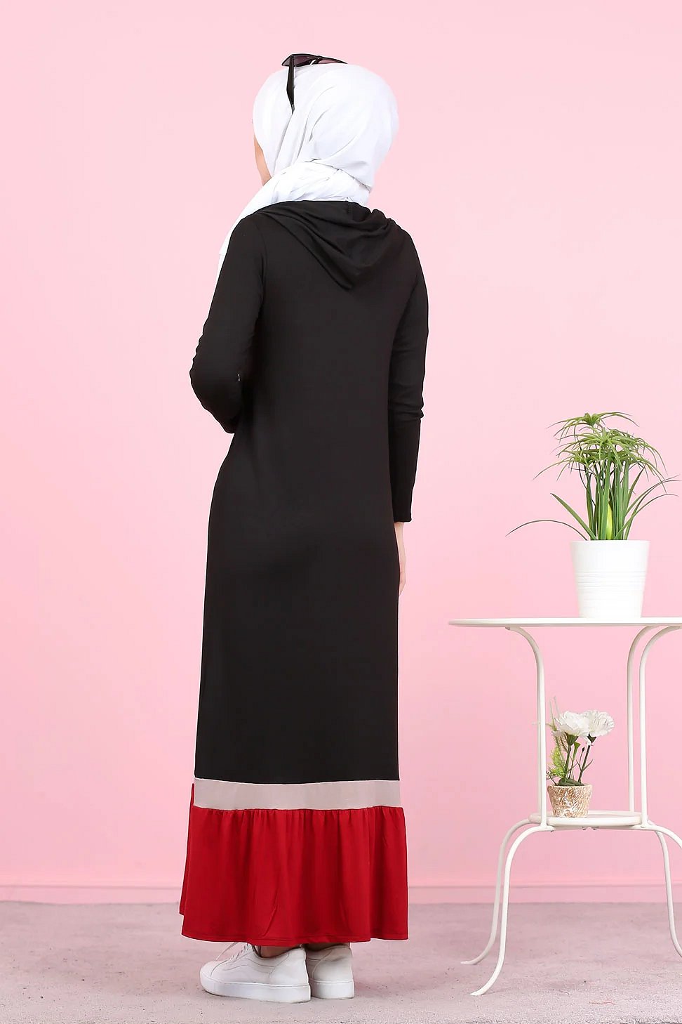Robe longue avec capuche style sportswear (Vetement Hijab) - Couleur noir et rouge