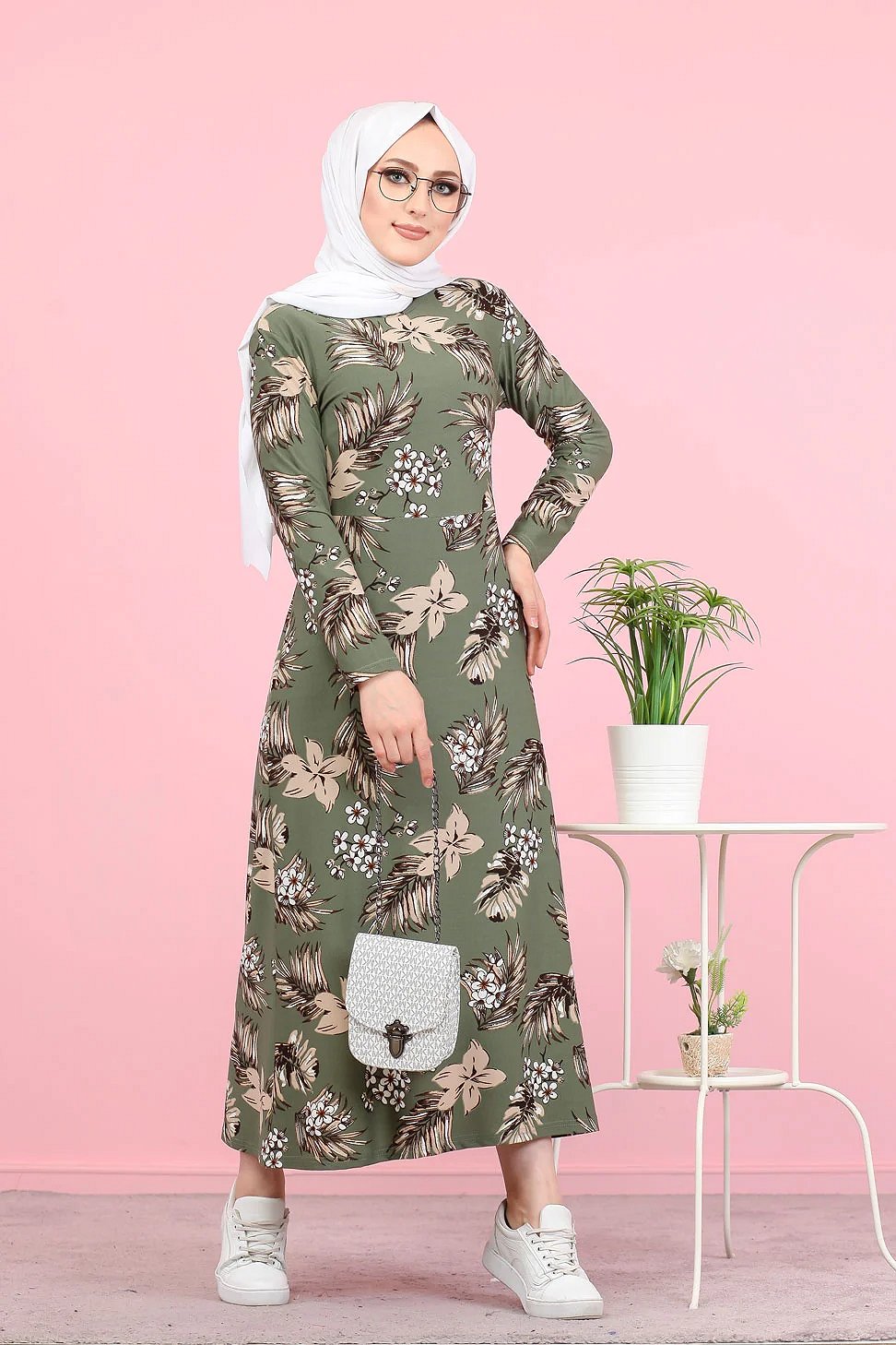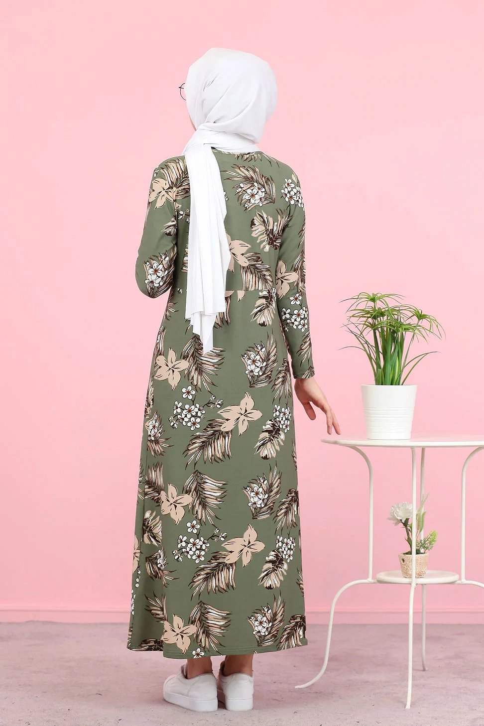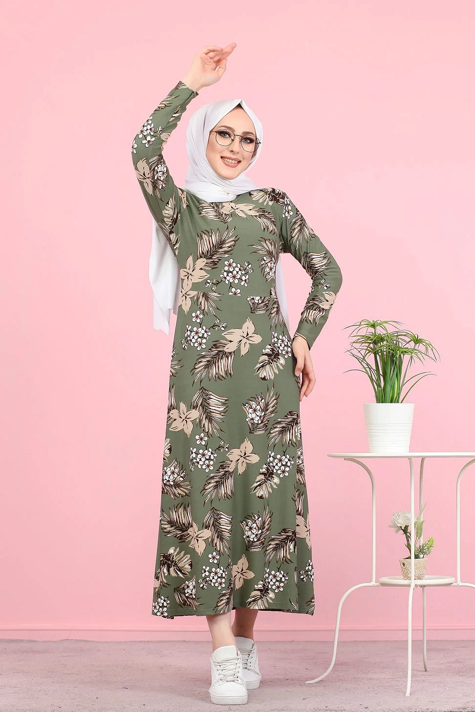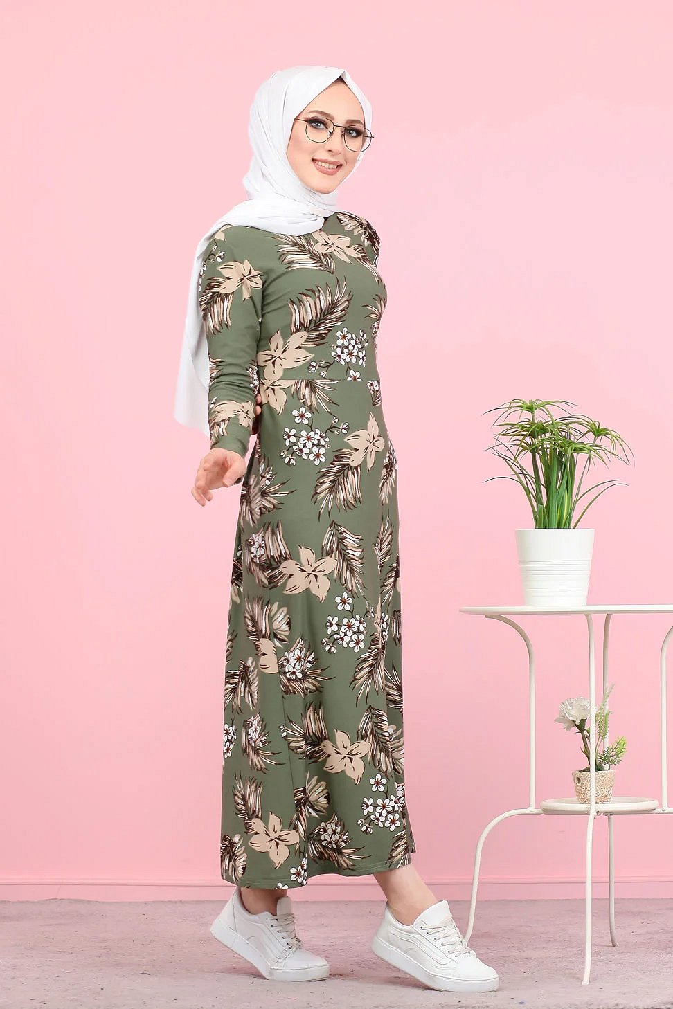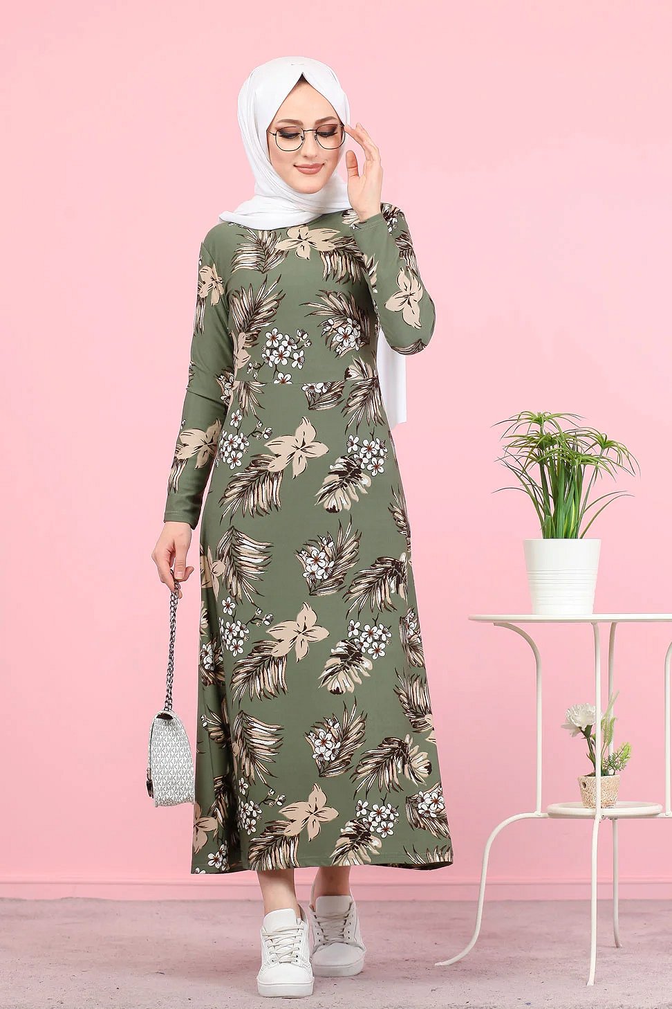 Robe longue imprimes fleurs (Vetement style femme voilee) - Couleur kaki
