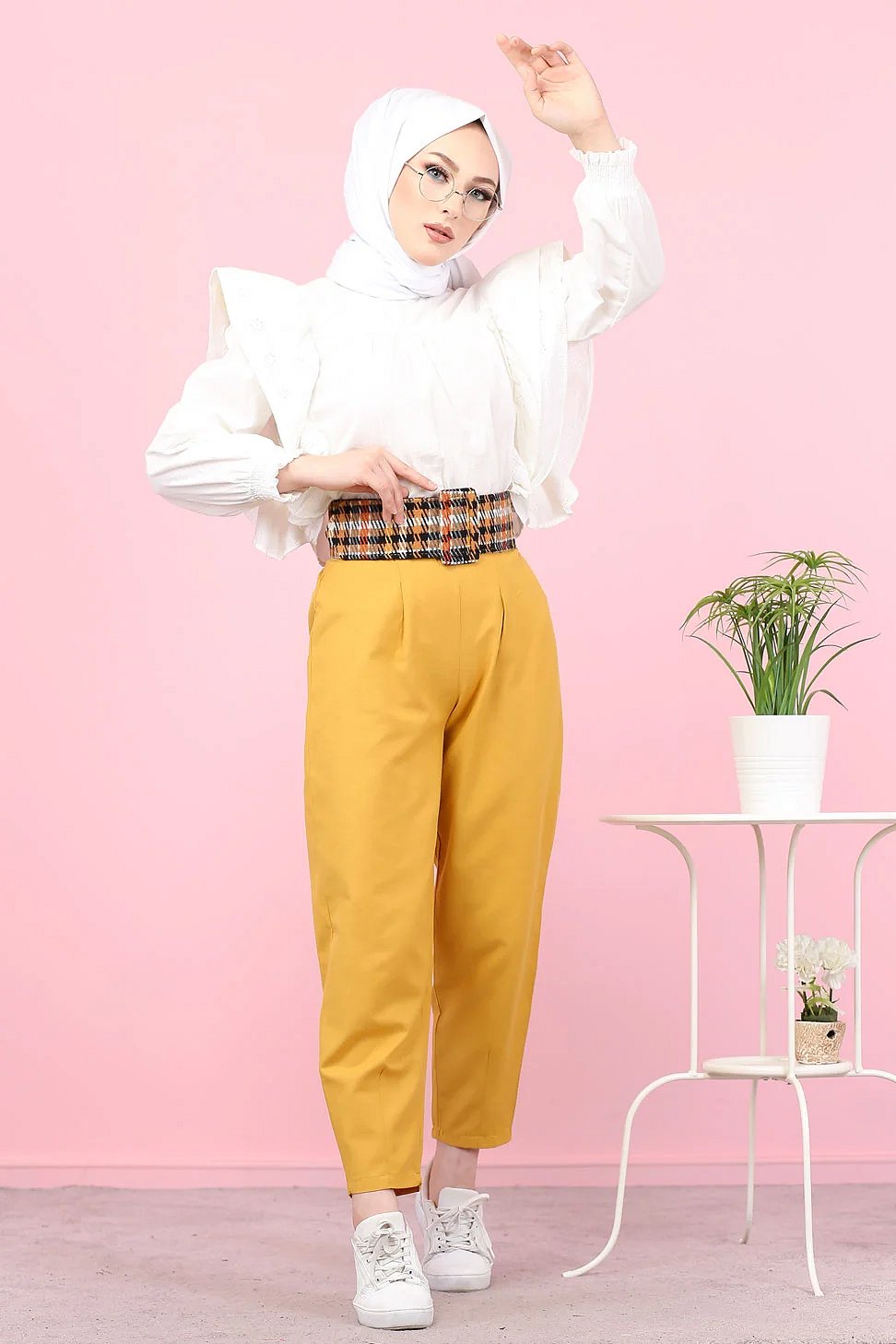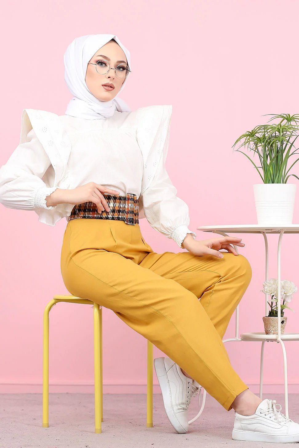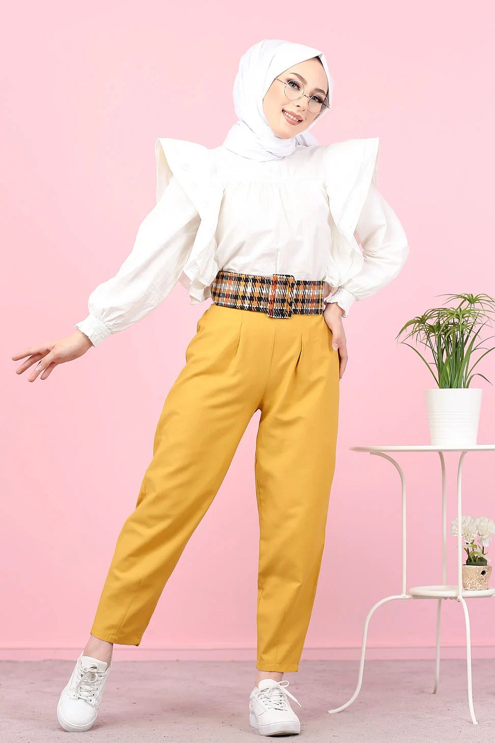 Pantalon a pinces pour femme (Mode islamique) - Couleur moutarde