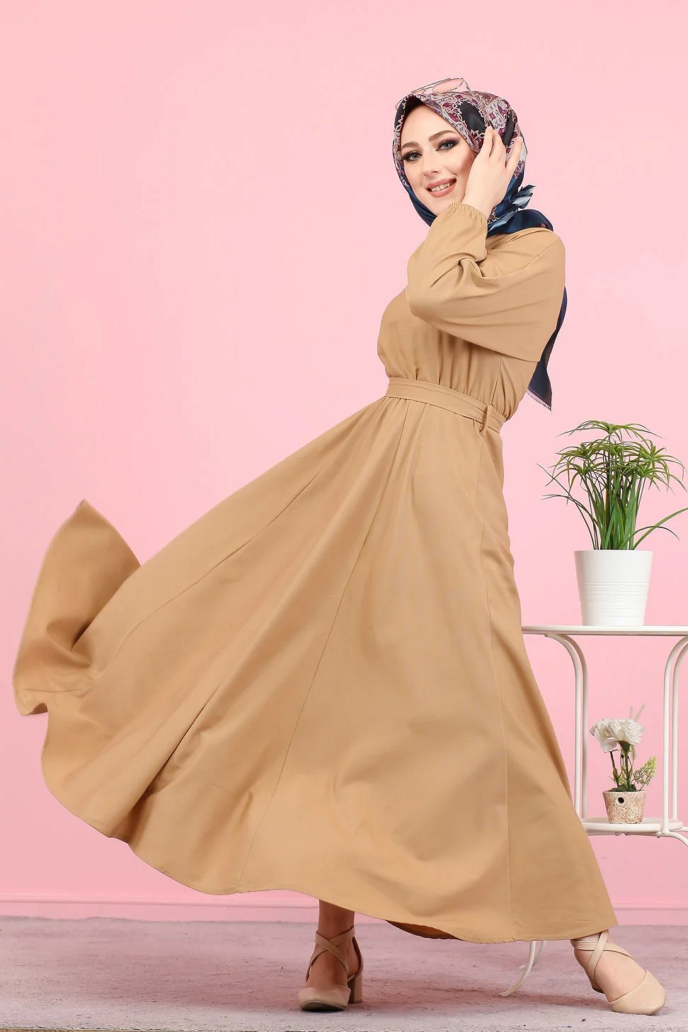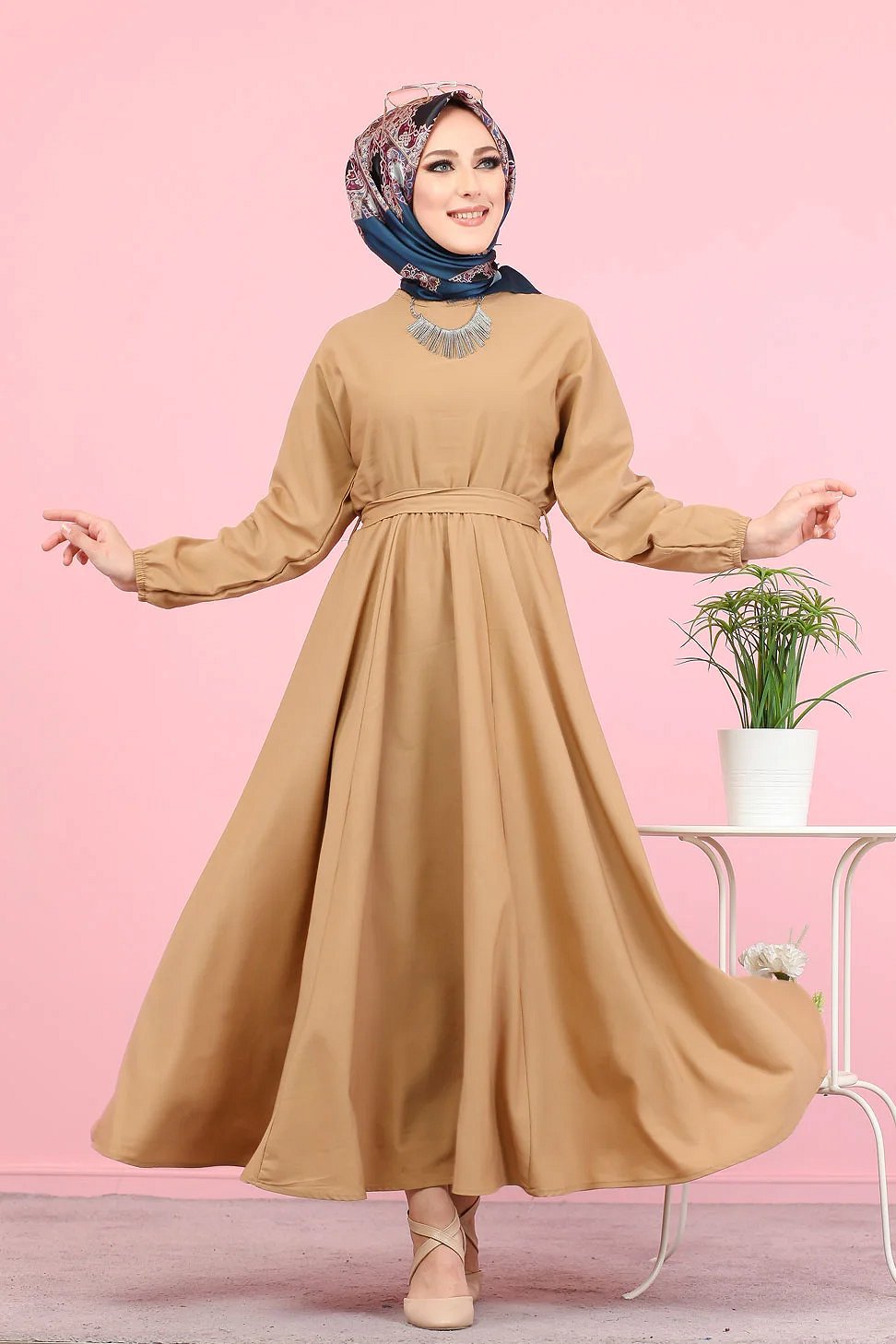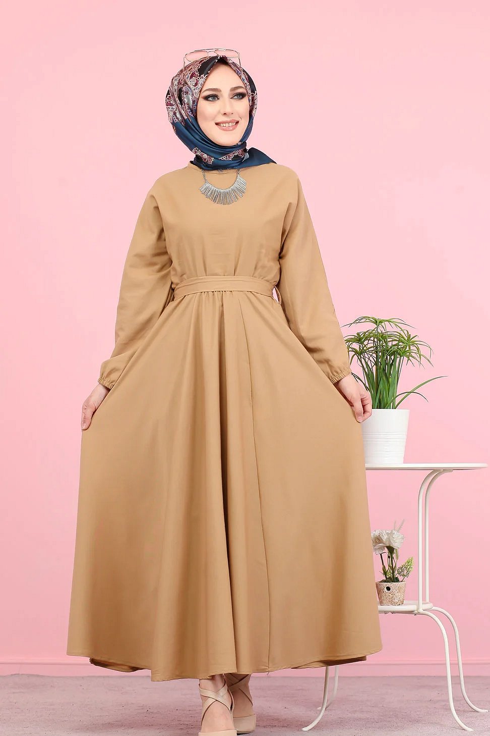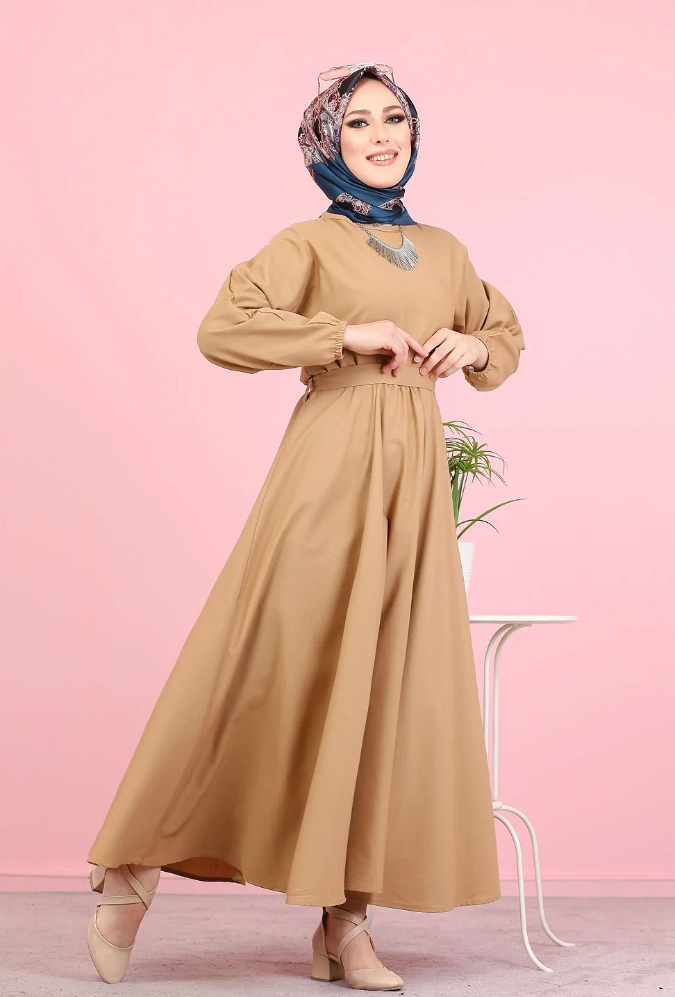Robe elegante longue ample pour femme (Vetement Hijab) - Couleur vison