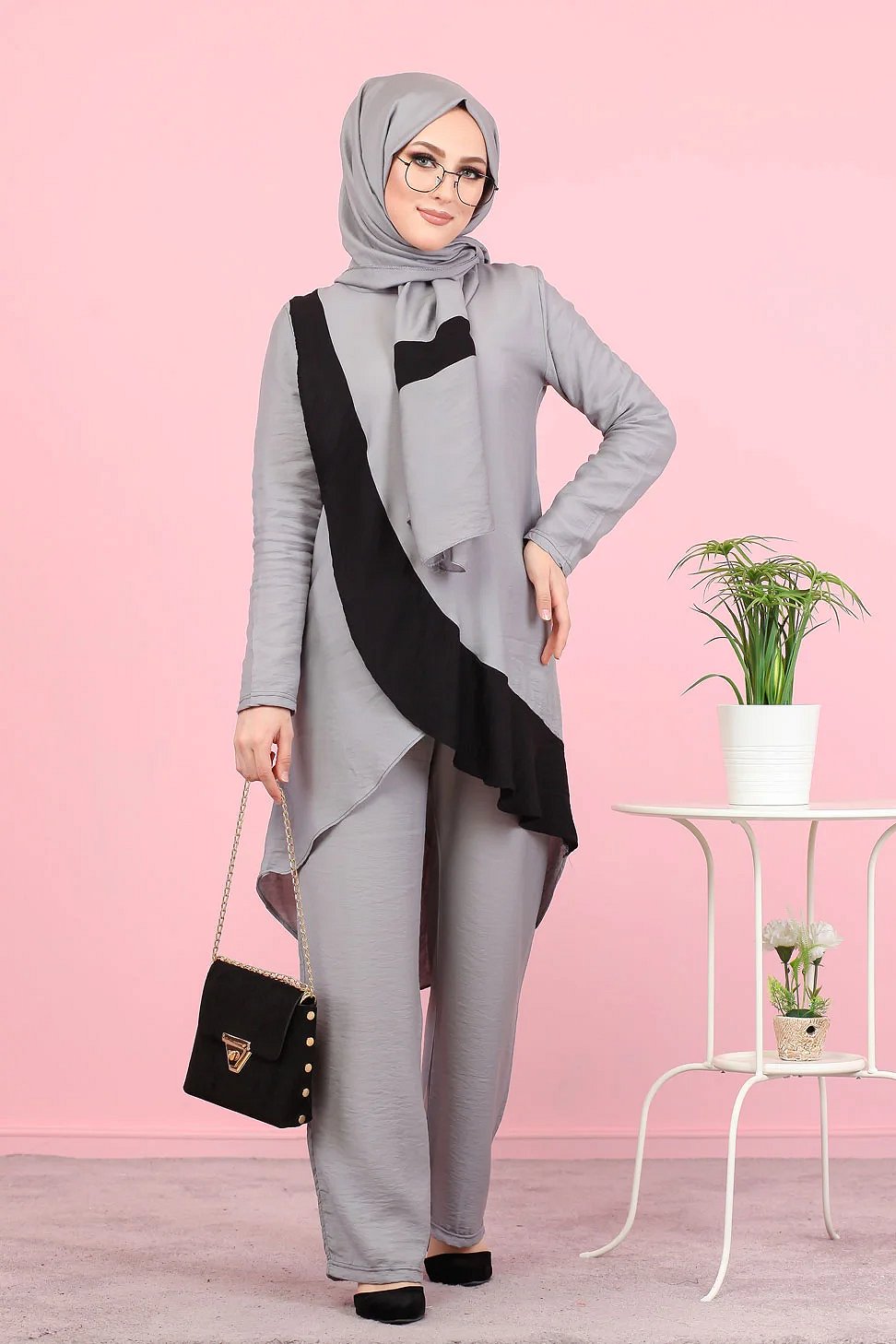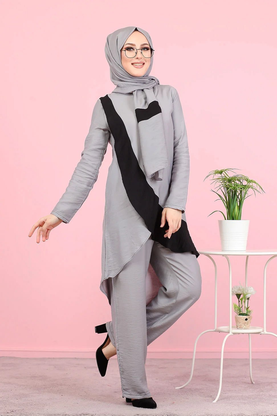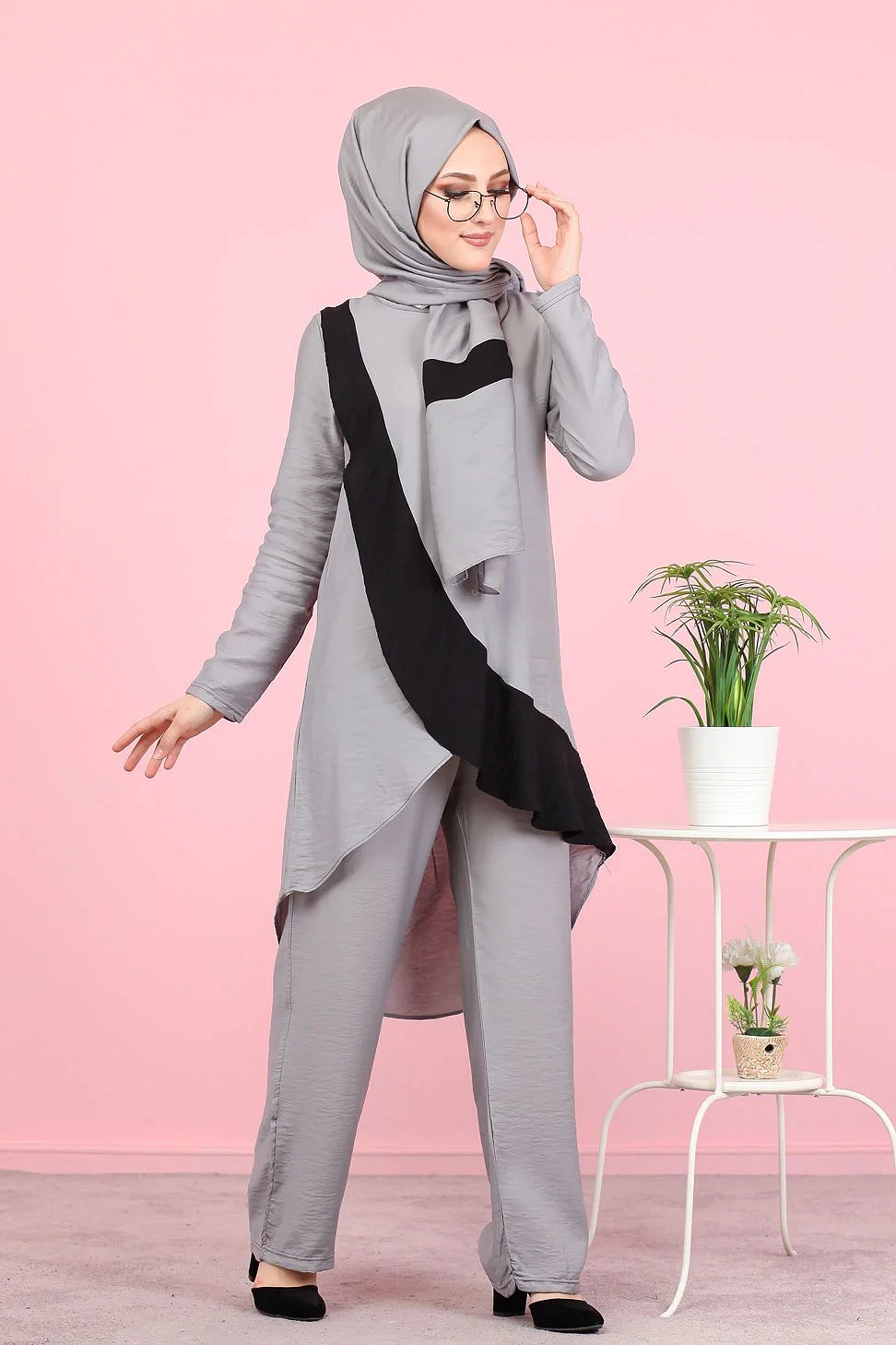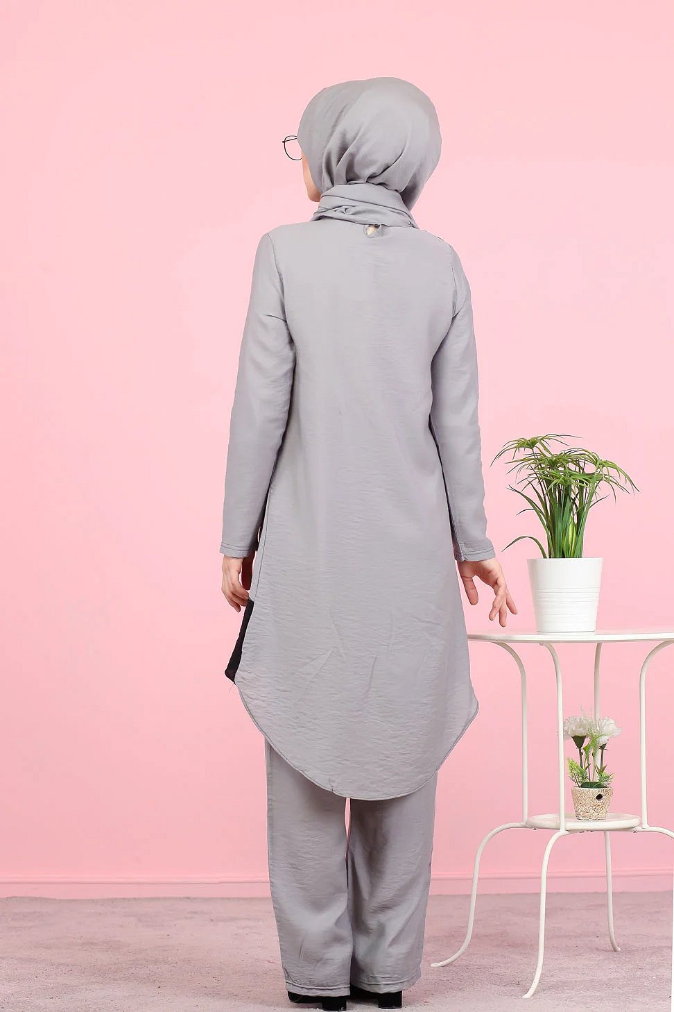 Ensemble ample 3 pièces : tunique - pantalon et voile assorti (Vetement pour femme voilée) - Couleur Gris Vetement & Accessoire