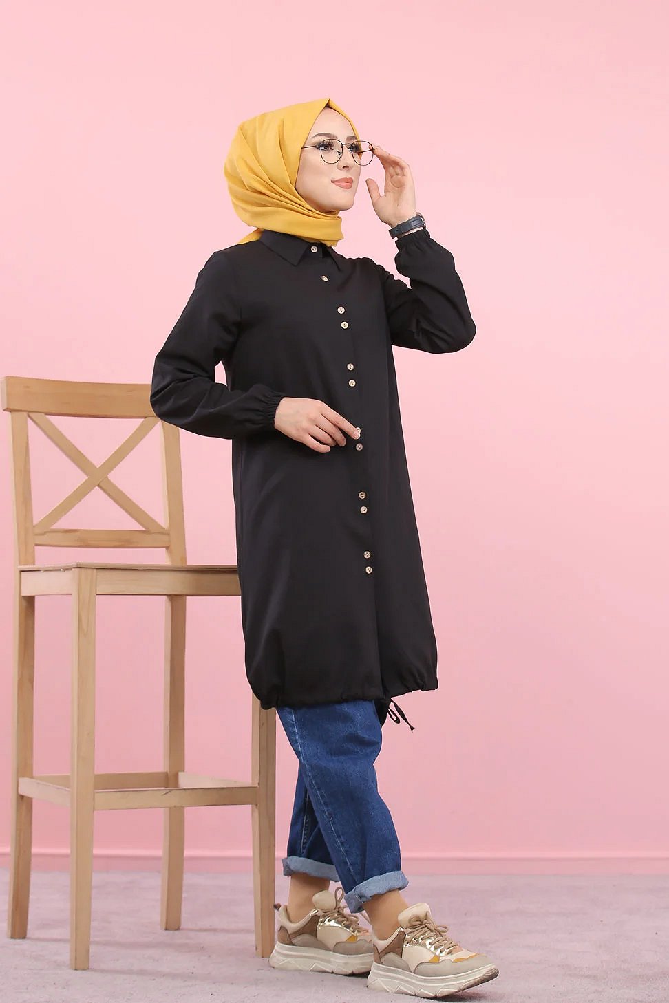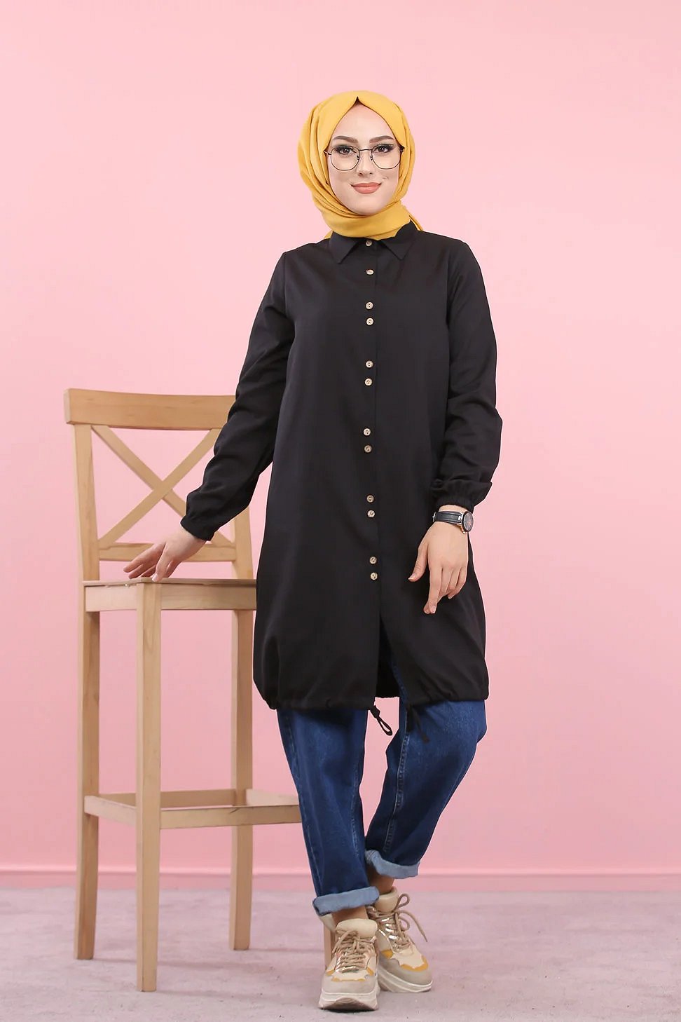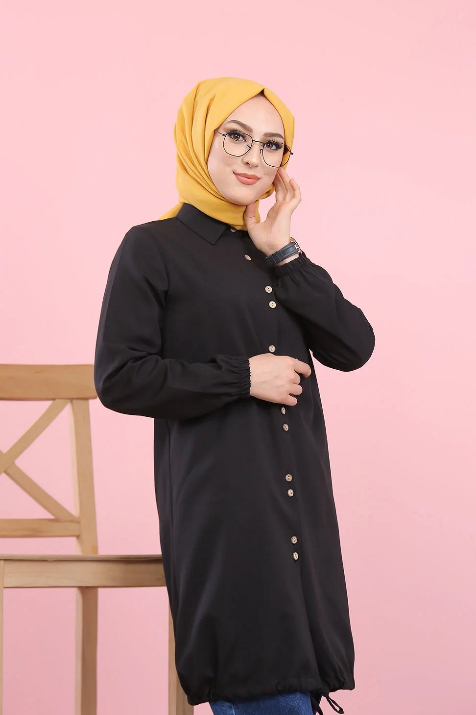 Tunique-Chemise ample boutonnée pour femme (Vetement Hijdab décontracté) - Couleur noir Vetement & Accessoire