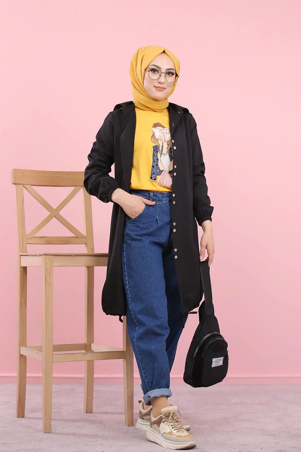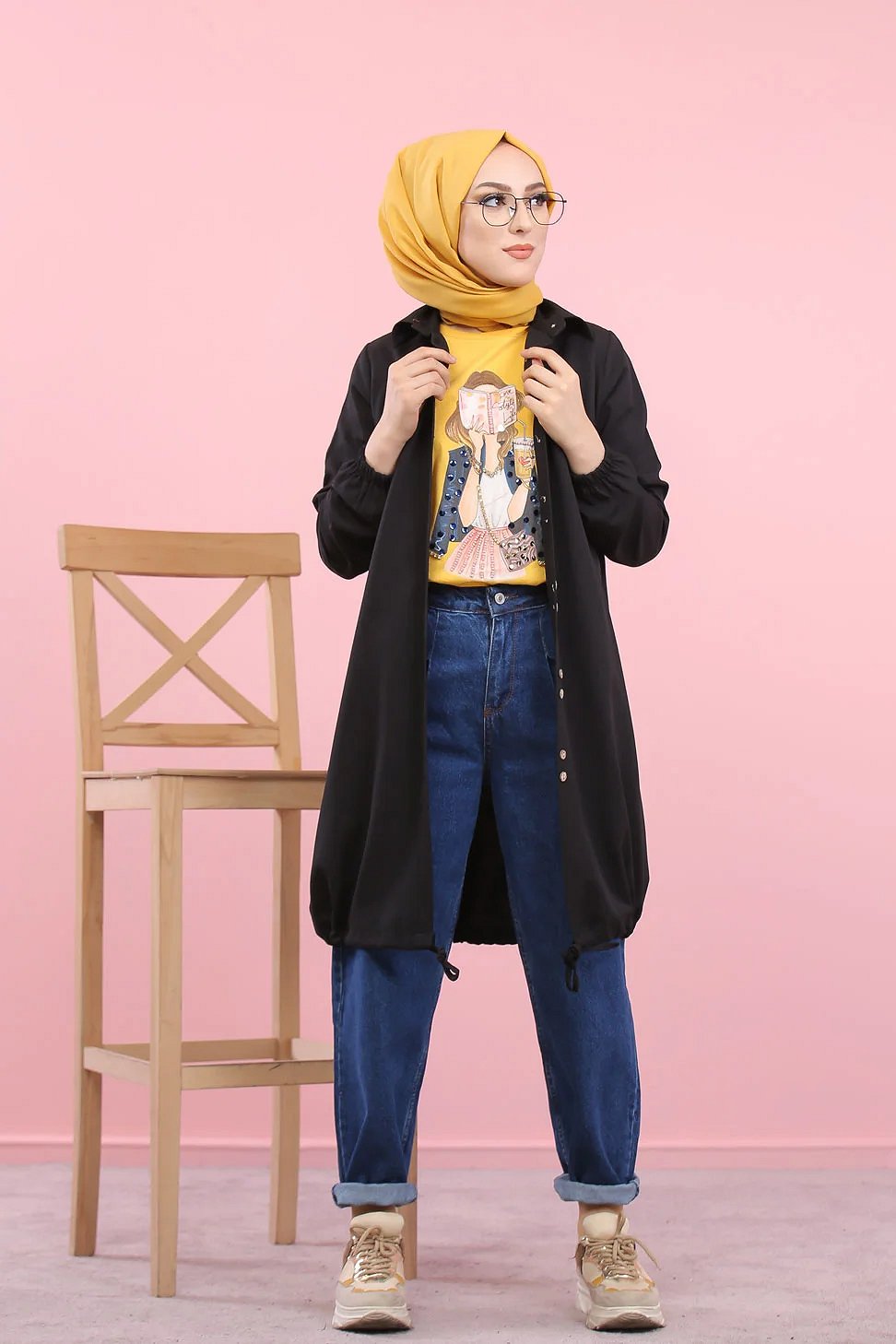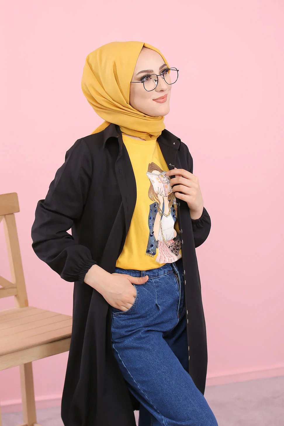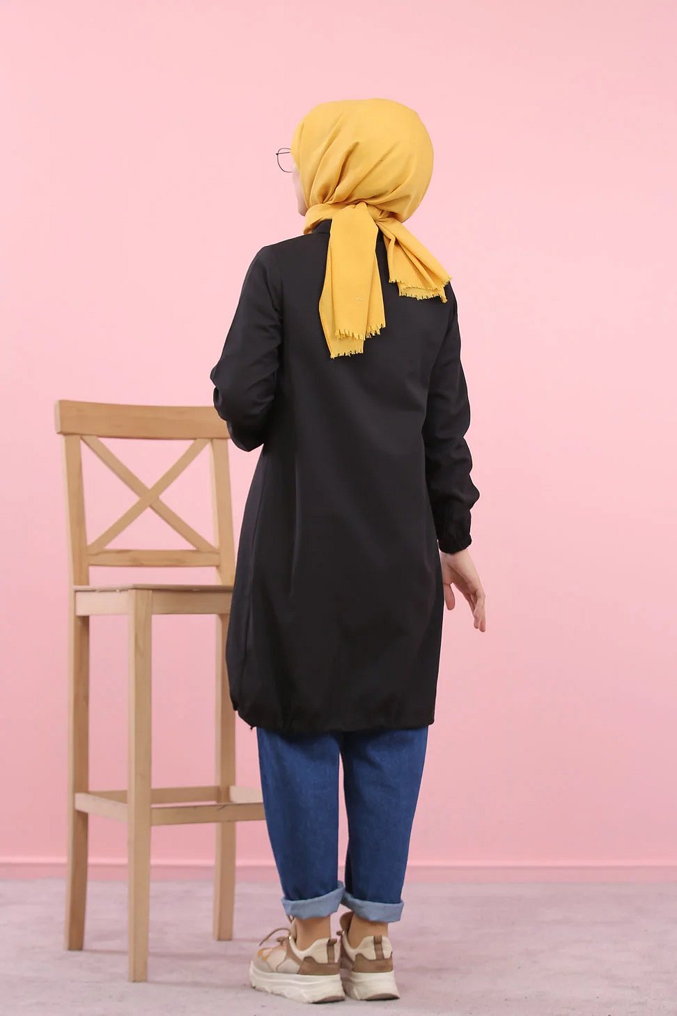 Tunique-Chemise ample boutonnée pour femme (Vetement Hijdab décontracté) - Couleur noir Vetement & Accessoire