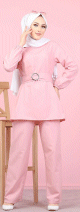 Ensemble femme : tunique et pantalon avec ceinture (Vêtement femme voilée) - Couleur rose - REF. 32323 (29.90 €)