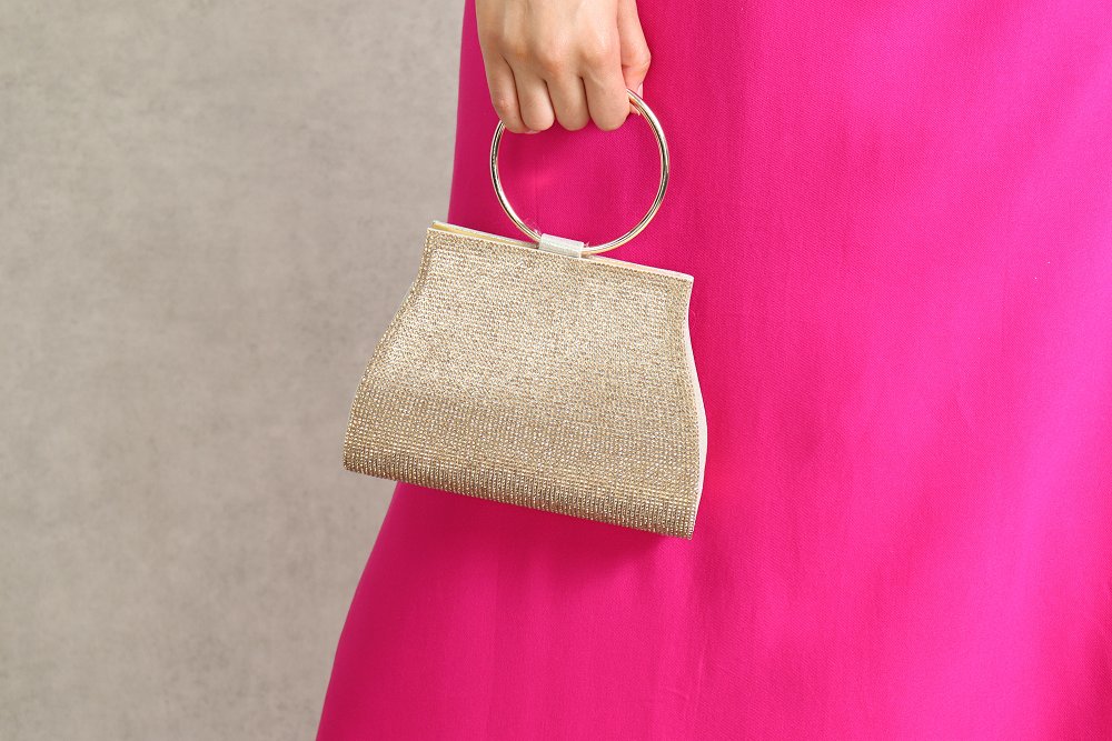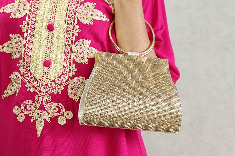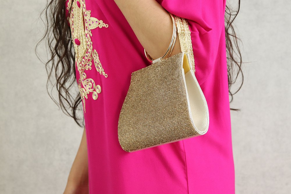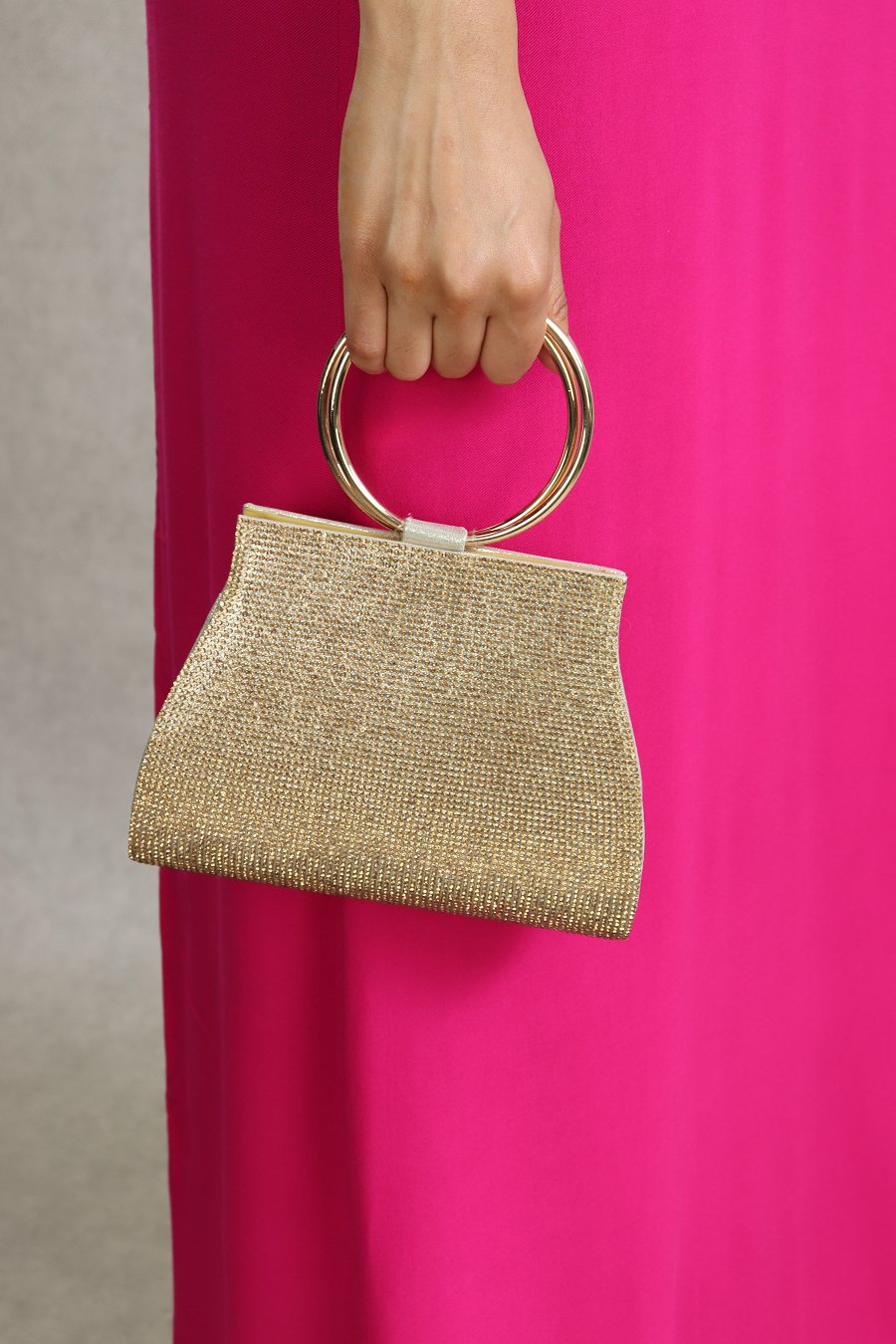 Sac à main femme entièrement recouvert de strass, anse métallique ronde pour soirée, mariage et fête - Couleur Doré Vetement & Accessoire