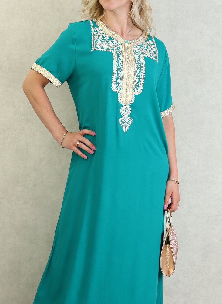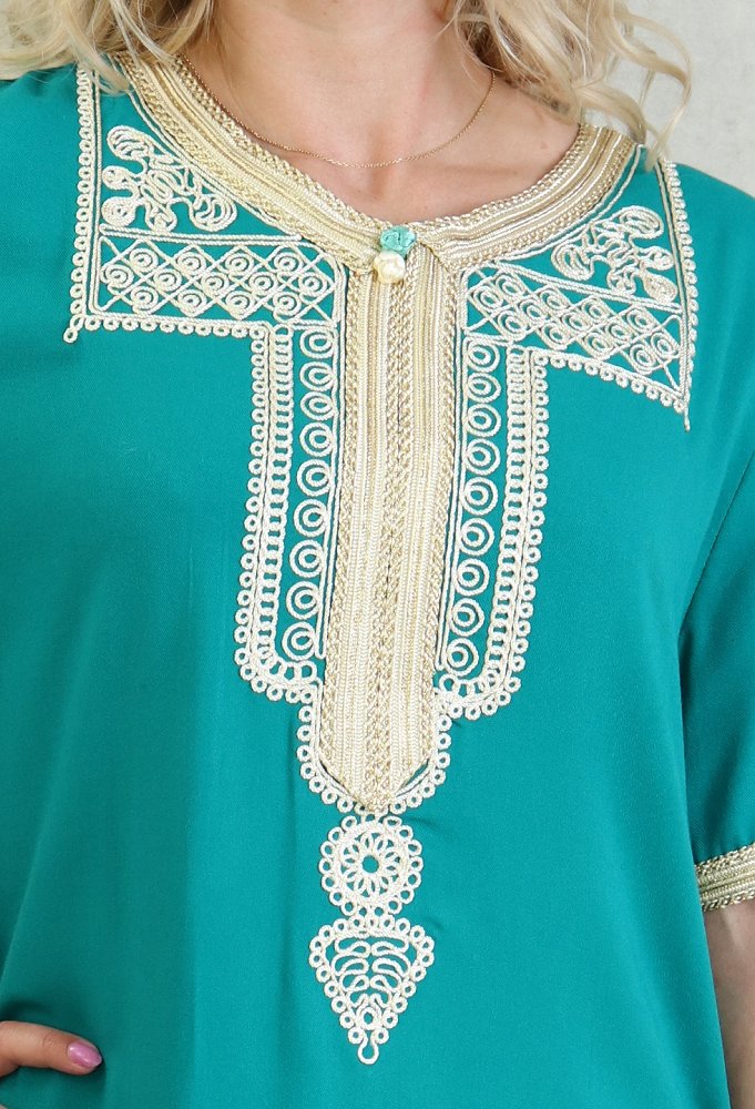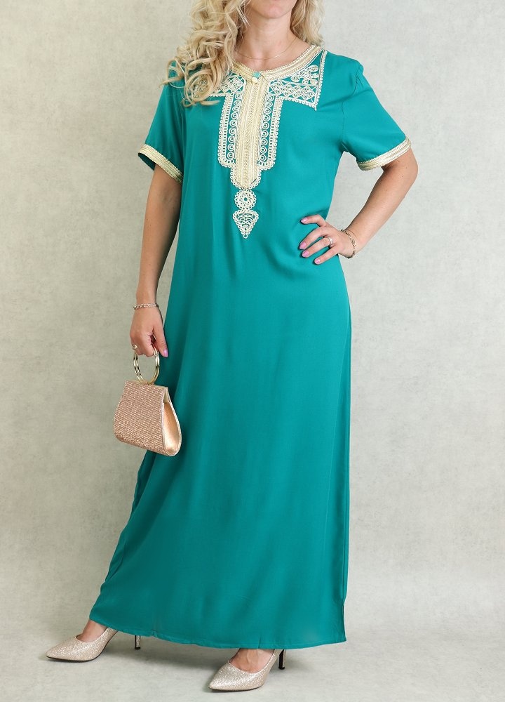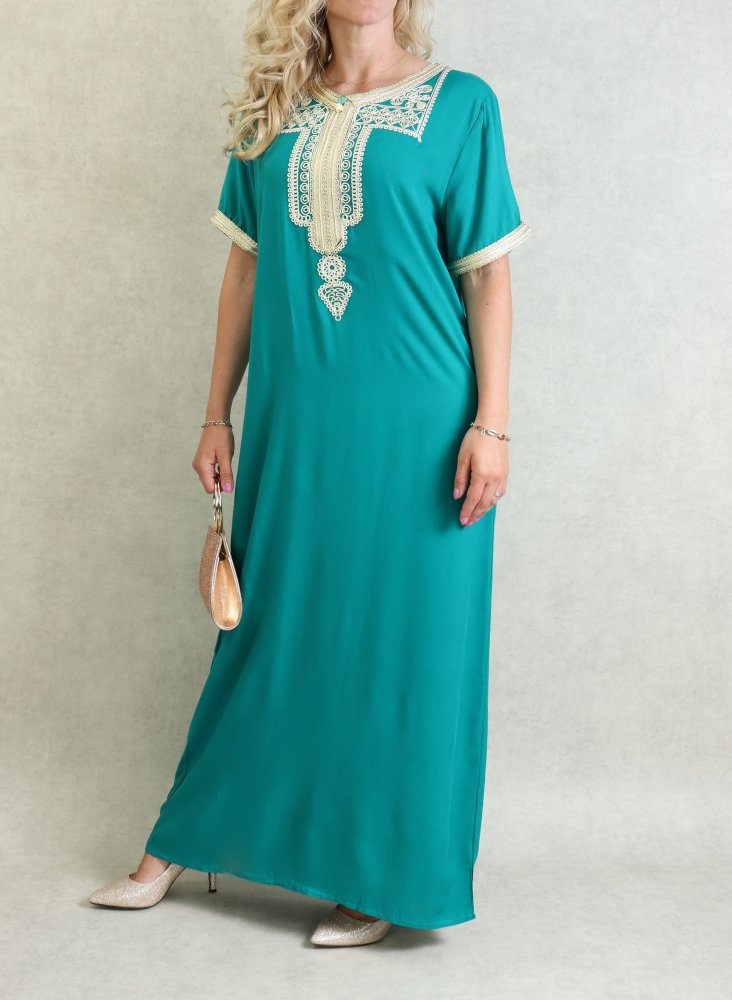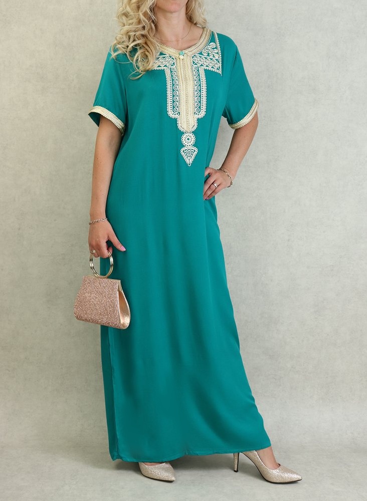 Robe marocaine manches courtes avec broderies - Couleur Vert émeraude - REF. 31841 (29.00 €)