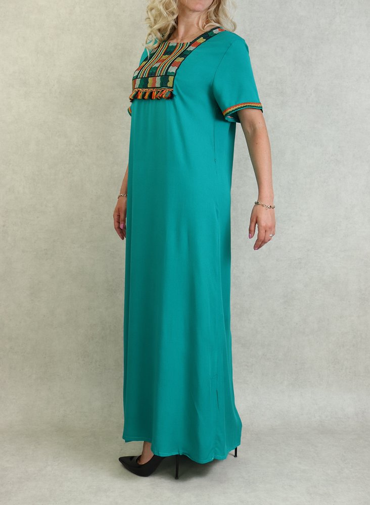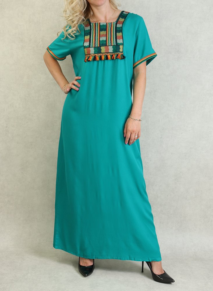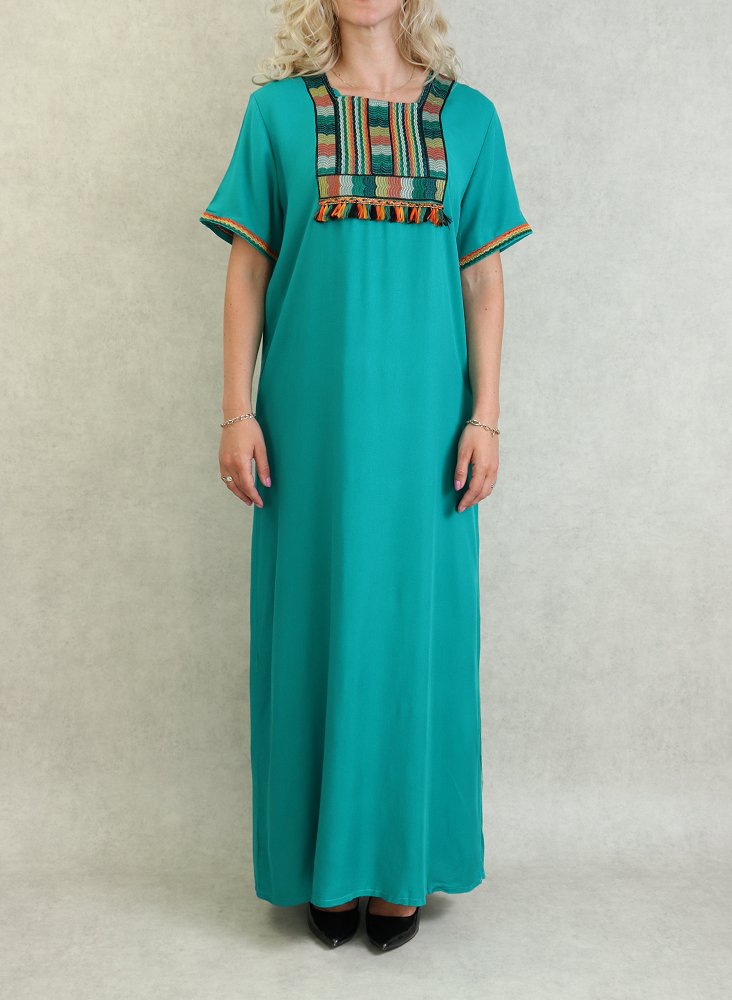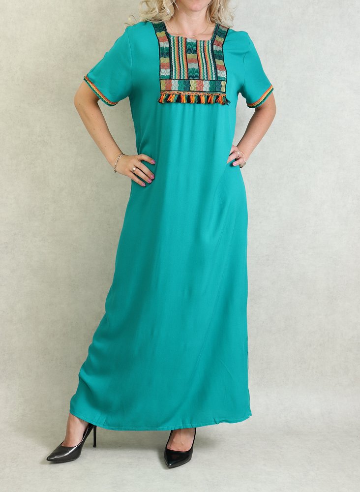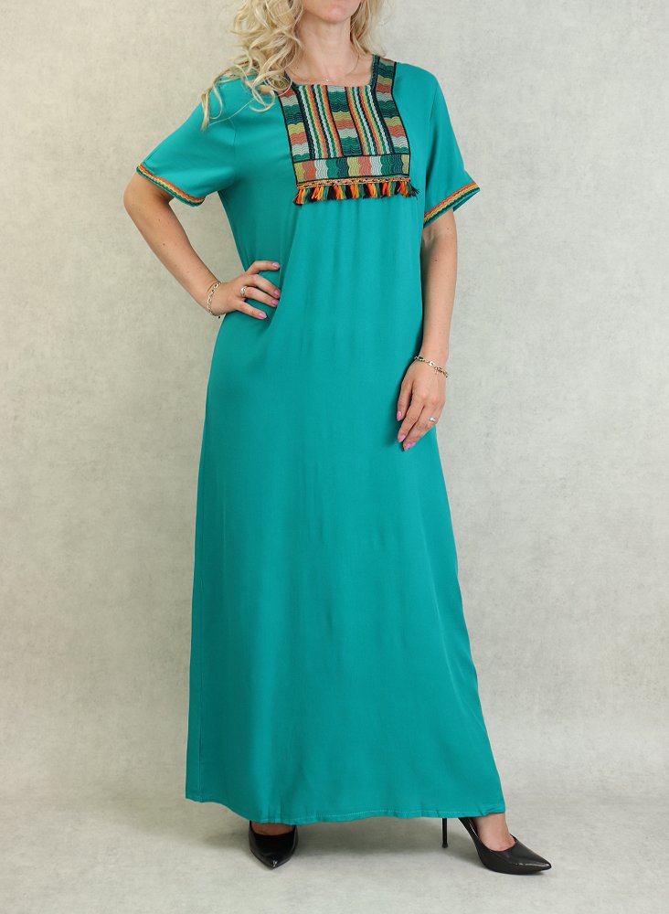 Robe orientale maxi-longue avec de nombreuses broderies à motif fleurs pour femme - Couleur Vert émeraude - REF. 33432 (29.00 €)