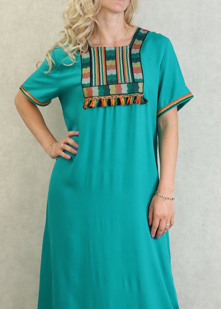 Robe longue manches courtes avec broderie originale - Couleur Vert Vetement & Accessoire