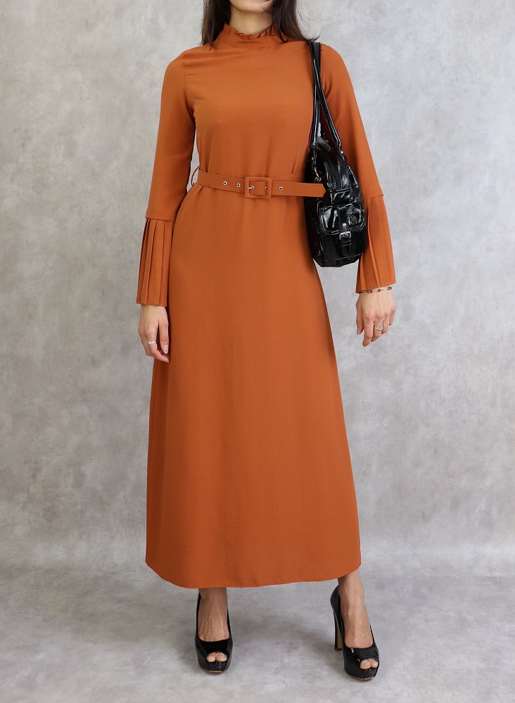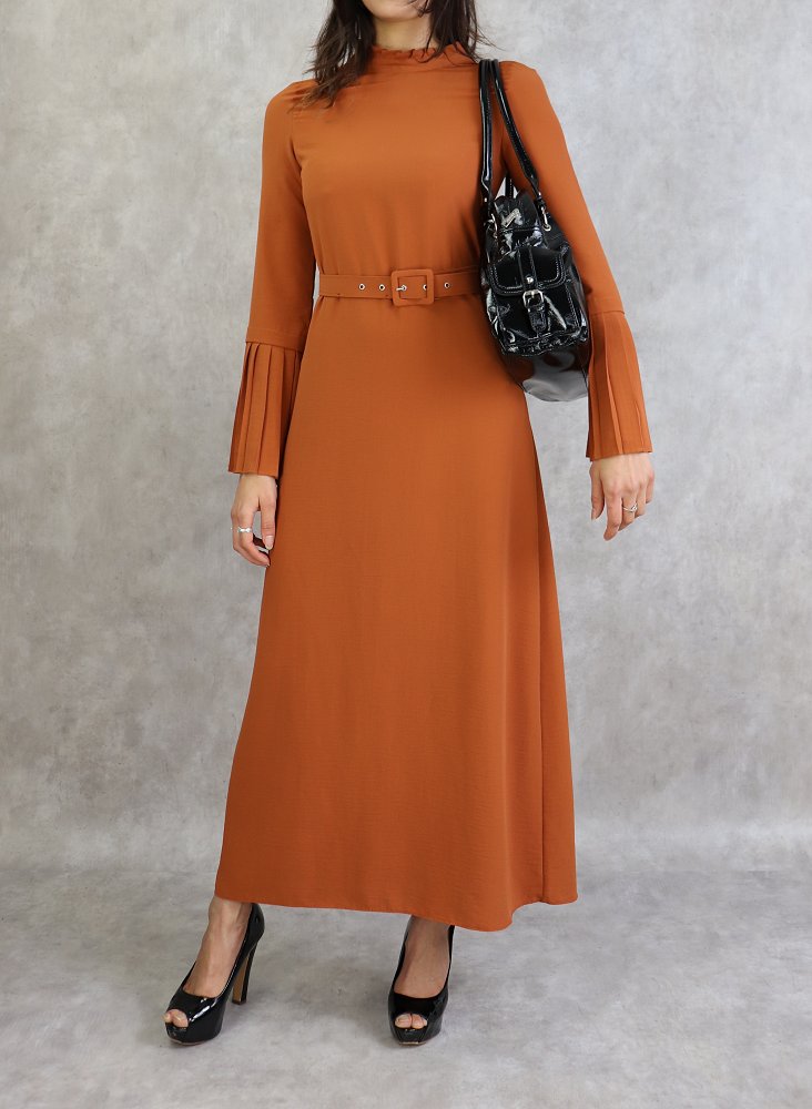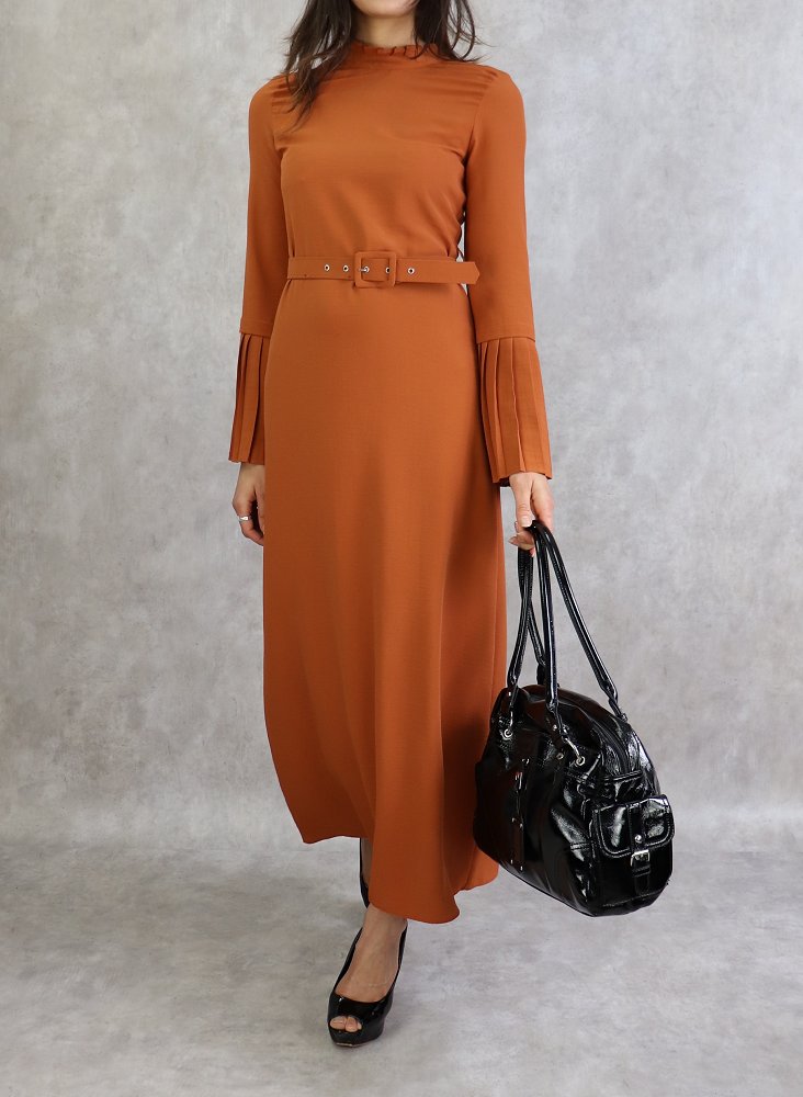 Robe classique et élégante manches plissées - Couleur brique Vetement & Accessoire