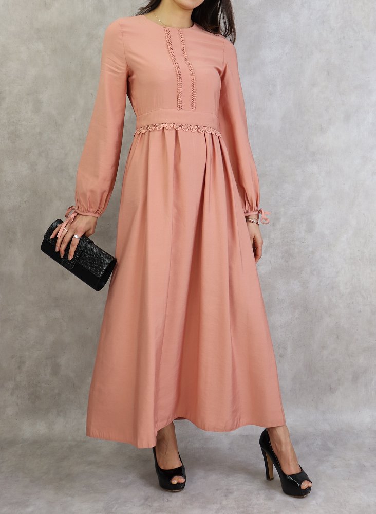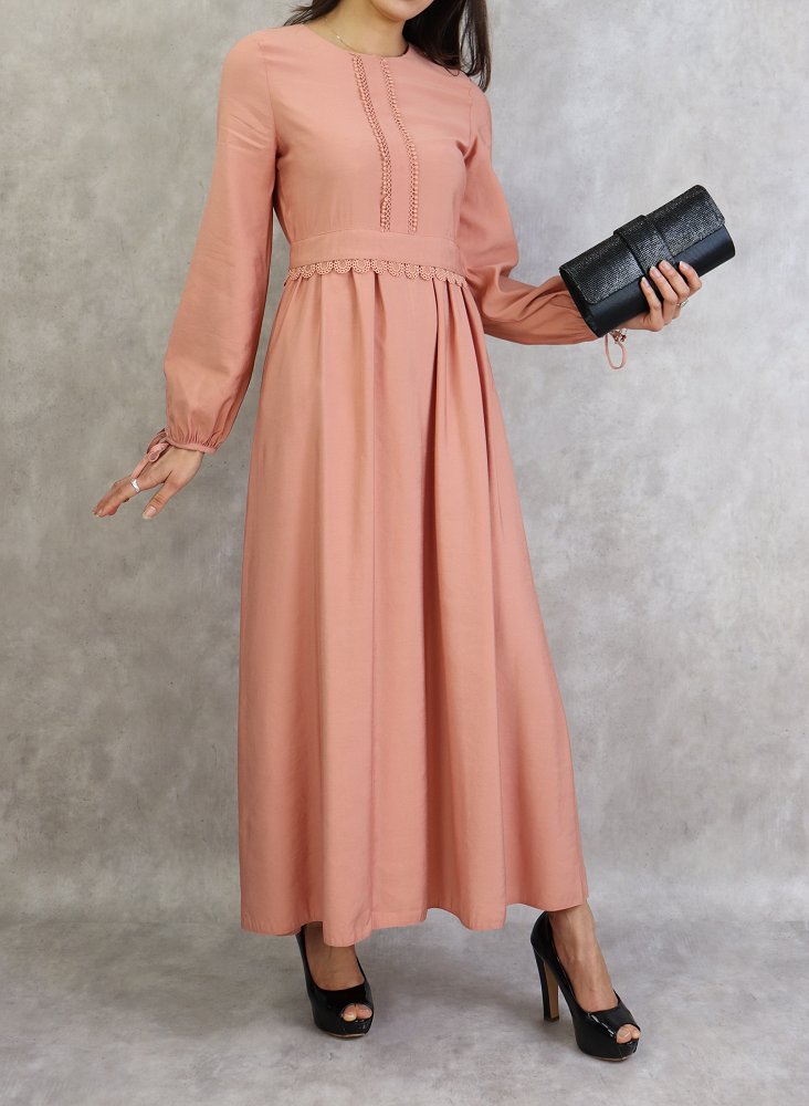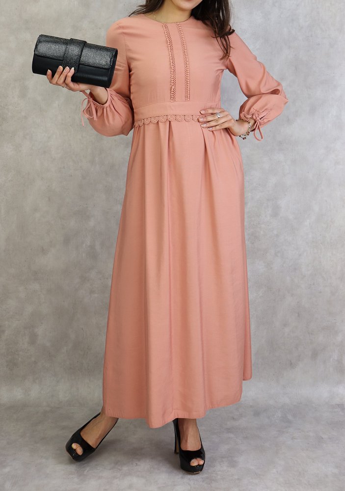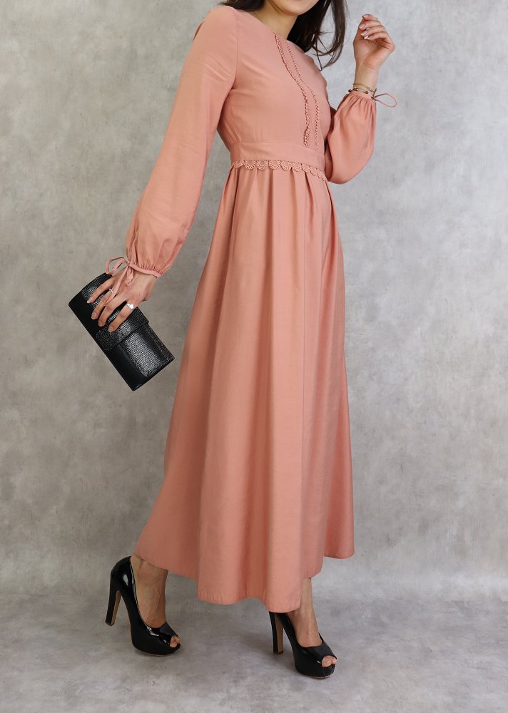 Robe longue classique et élégante pour femme - Couleur Rose pêche Vetement & Accessoire