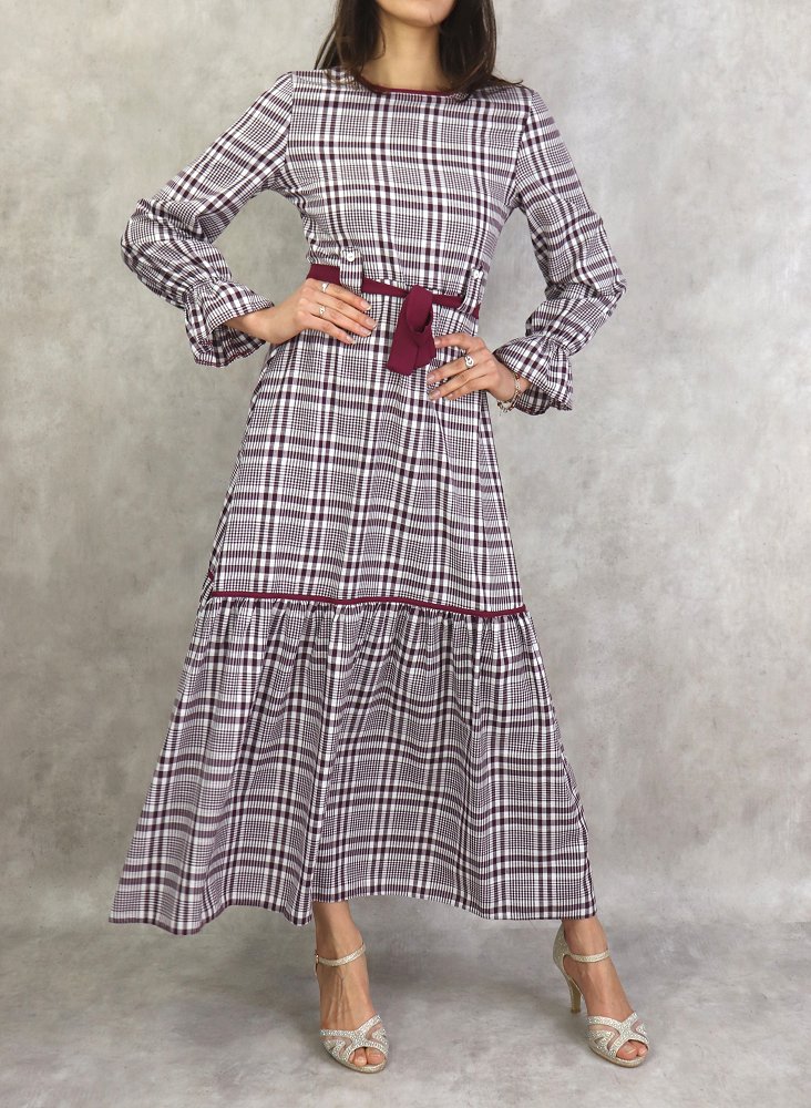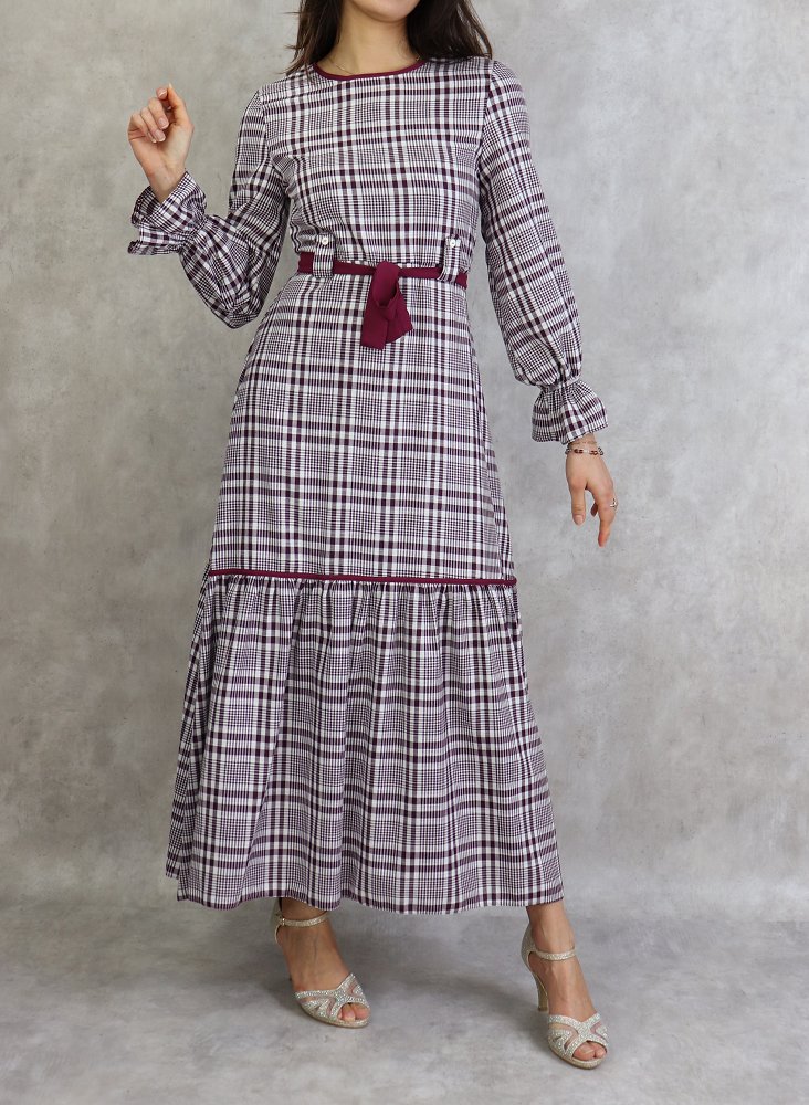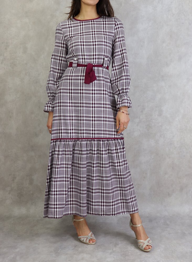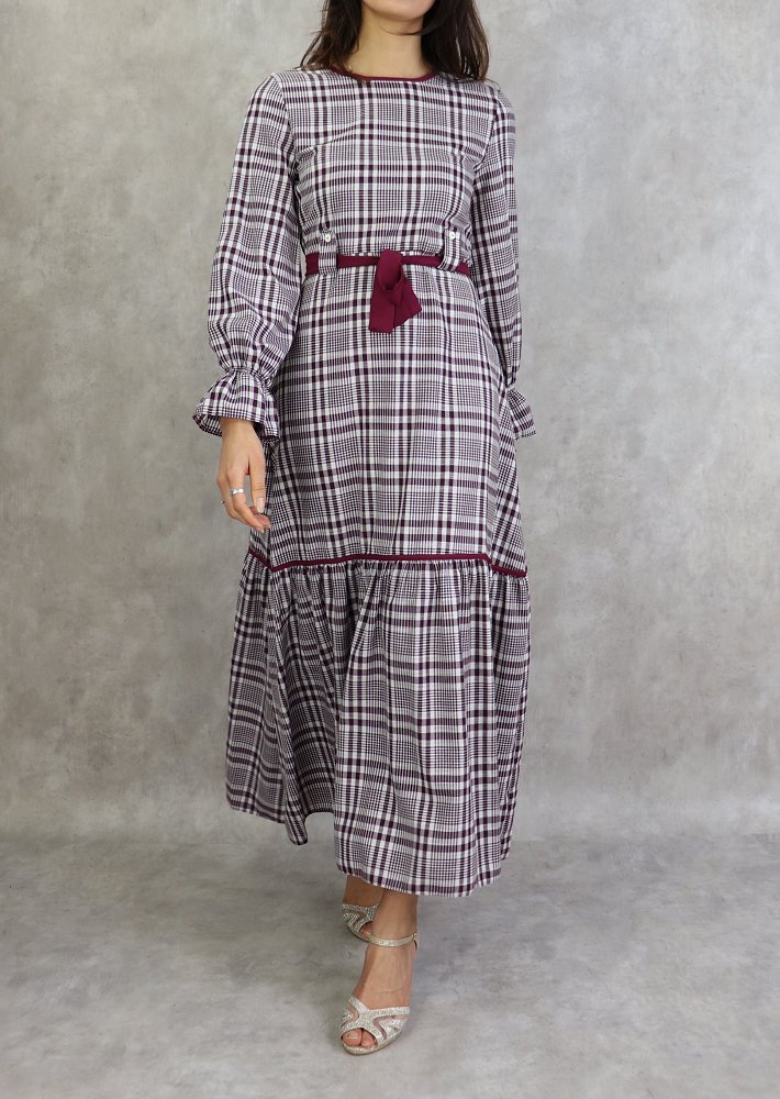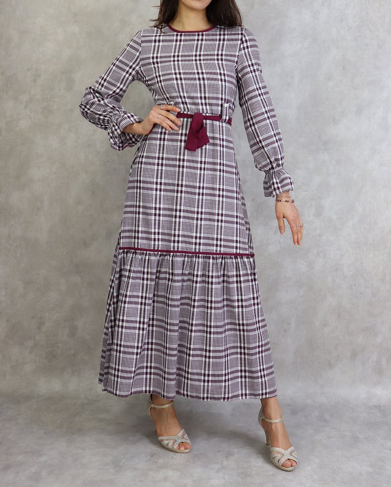 Robe longue à carreaux évasée - Couleur Violet d'vêque Vetement & Accessoire