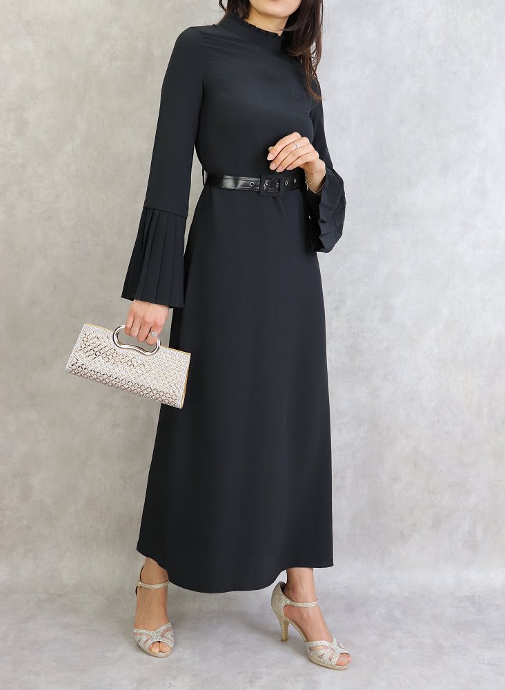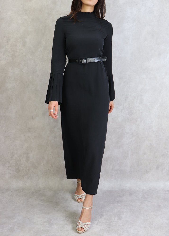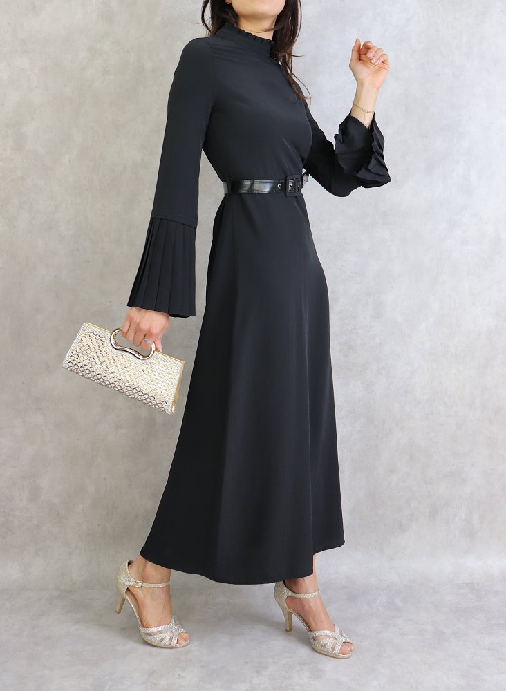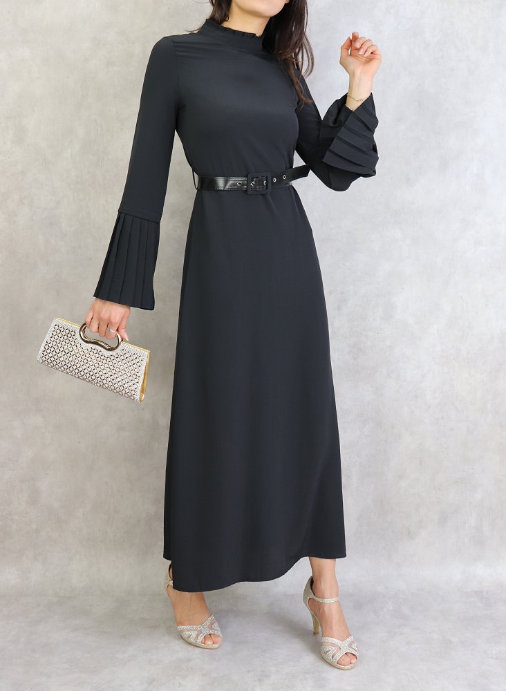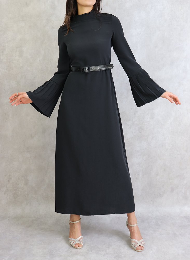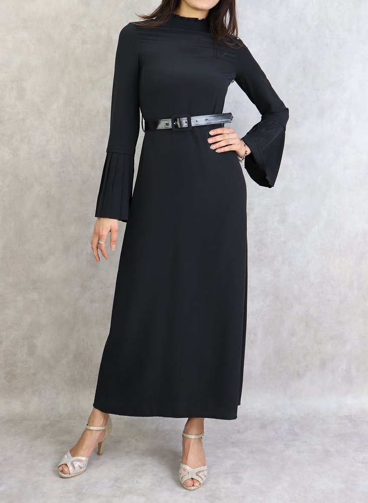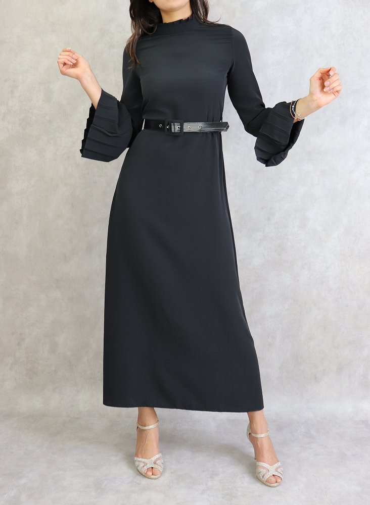 Robe classique et élégante manches plissées - Couleur Noir Vetement & Accessoire