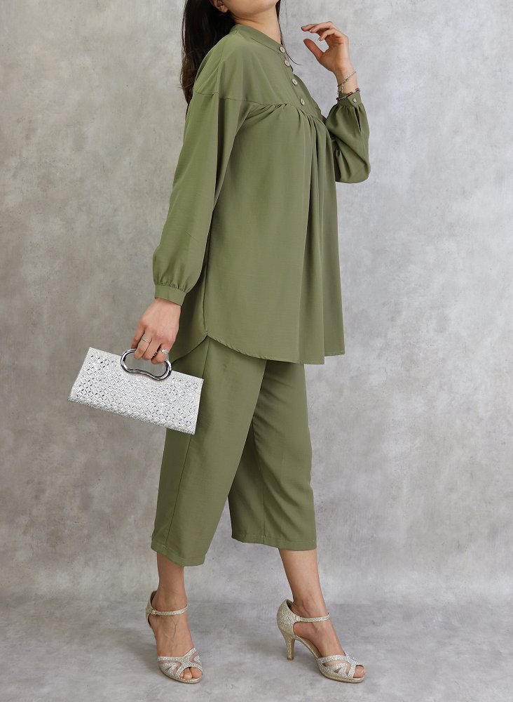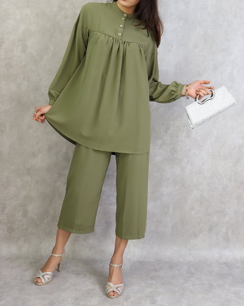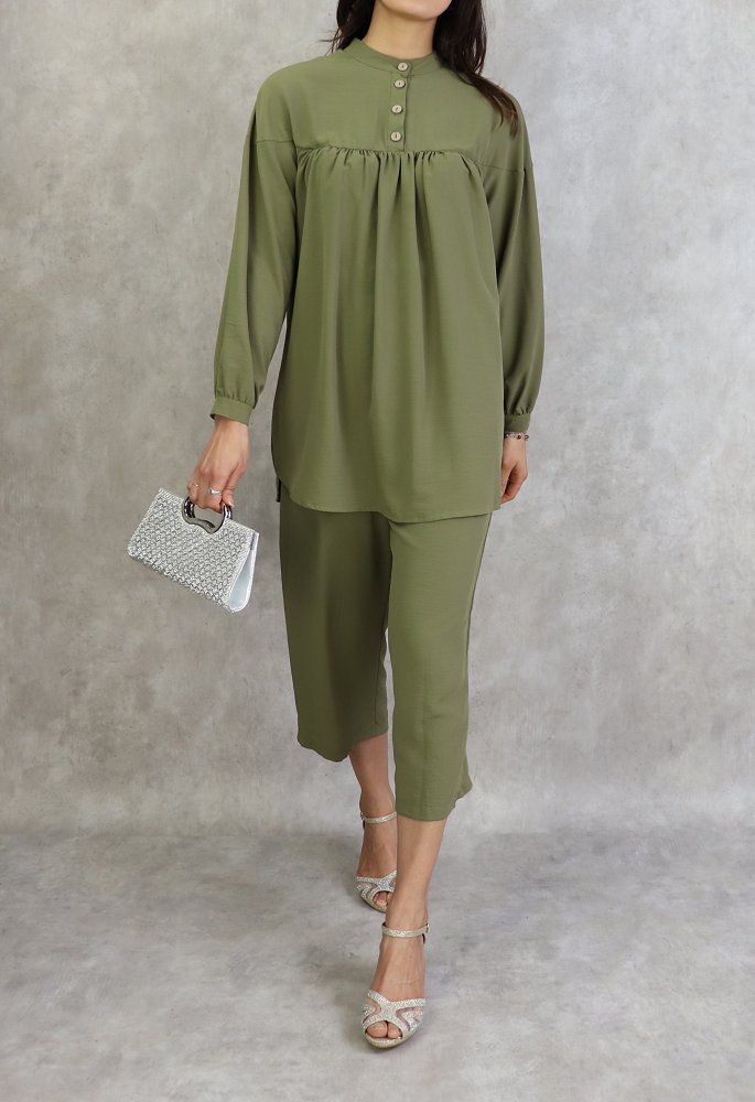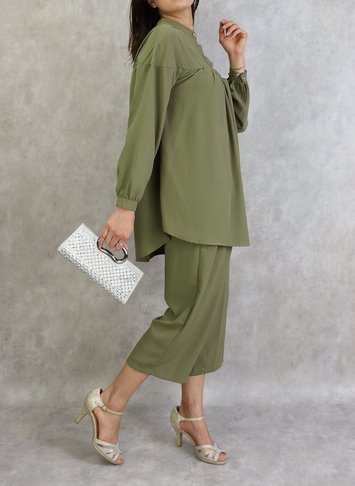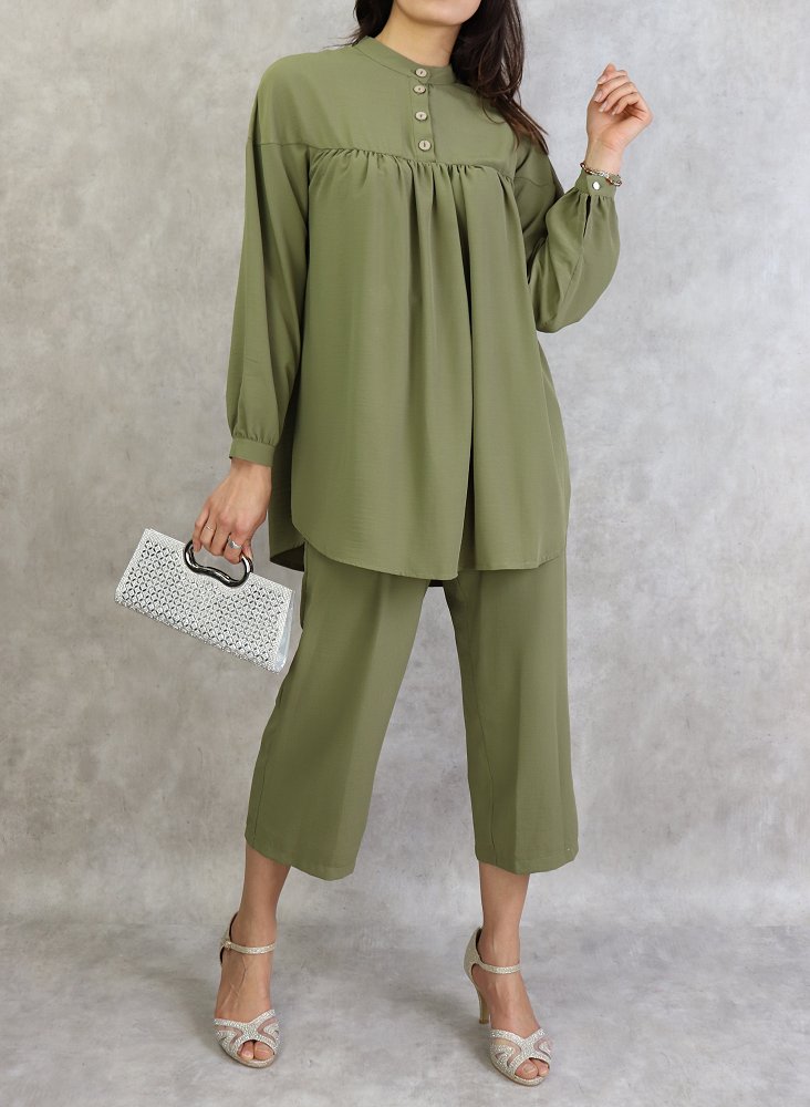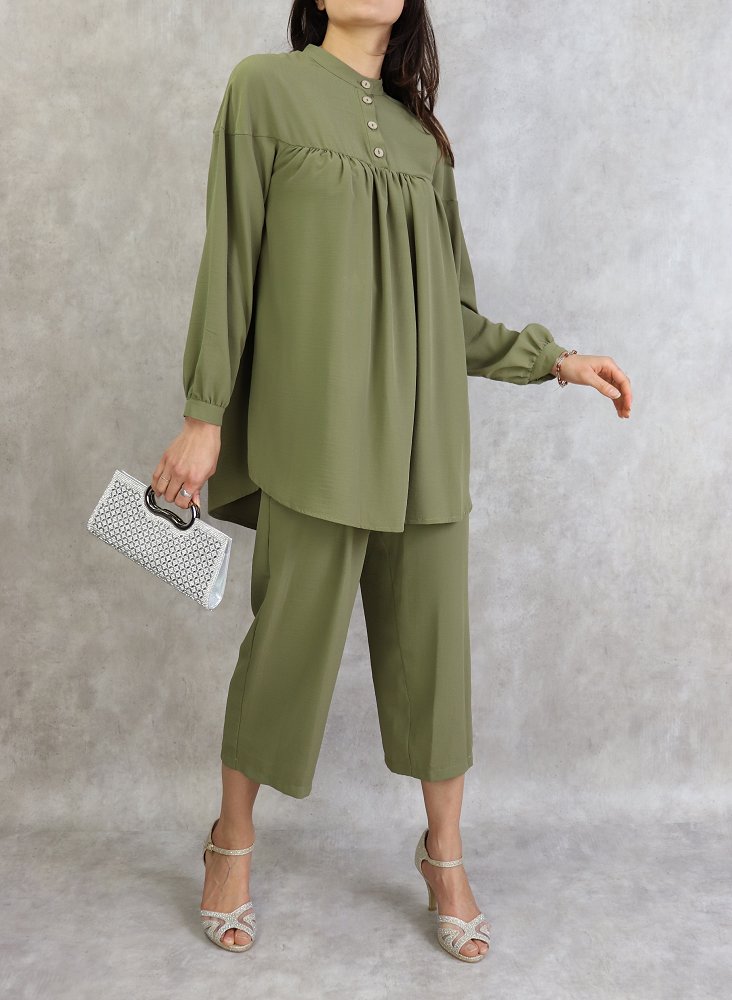 Ensemble casual chic pour femme - Deux pieces (tunique et pantalon) - Couleur Vert kaki