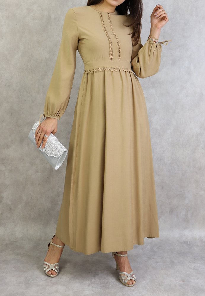 Robe longue classique et élégante pour femme - Couleur Beige Vetement & Accessoire