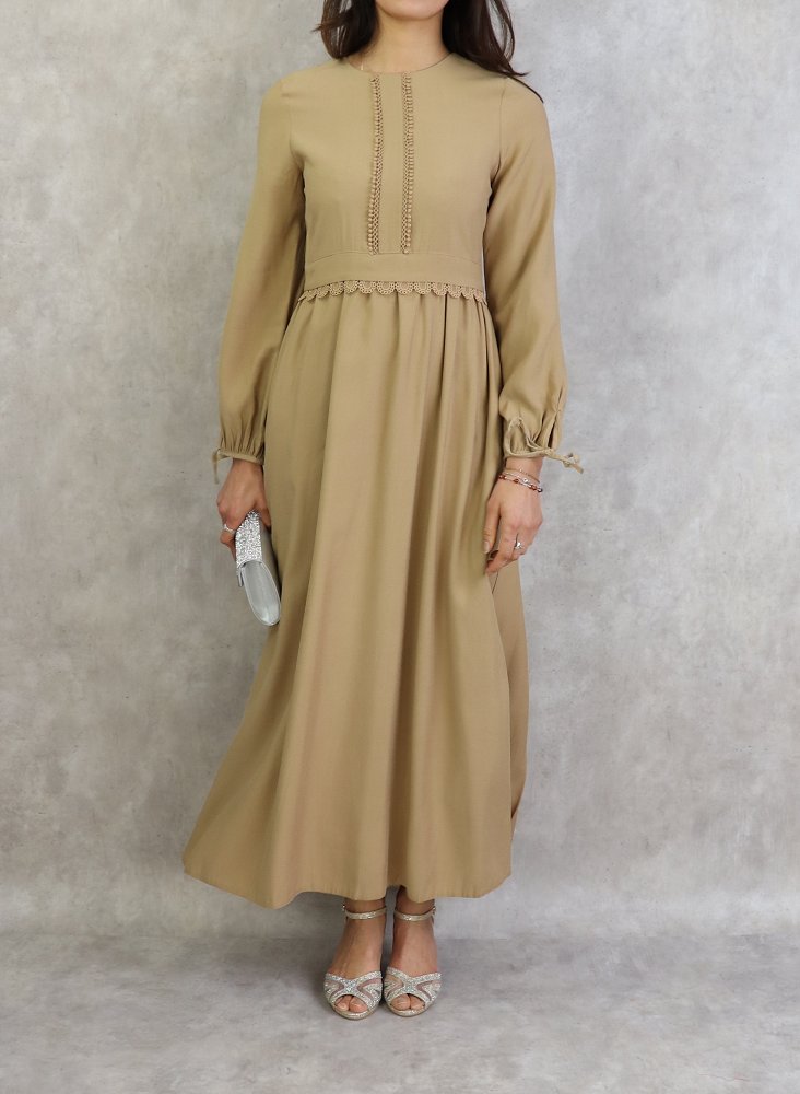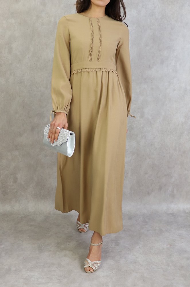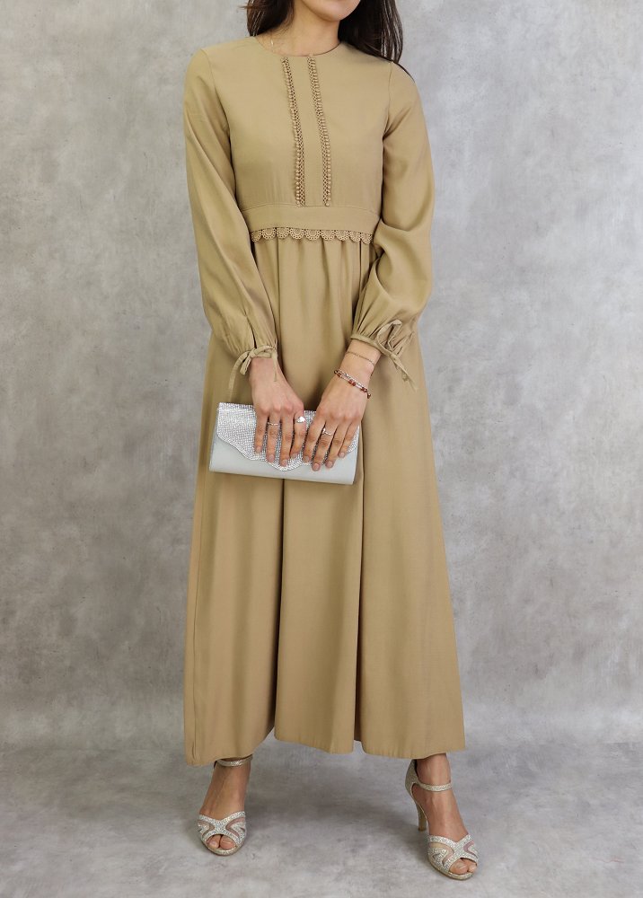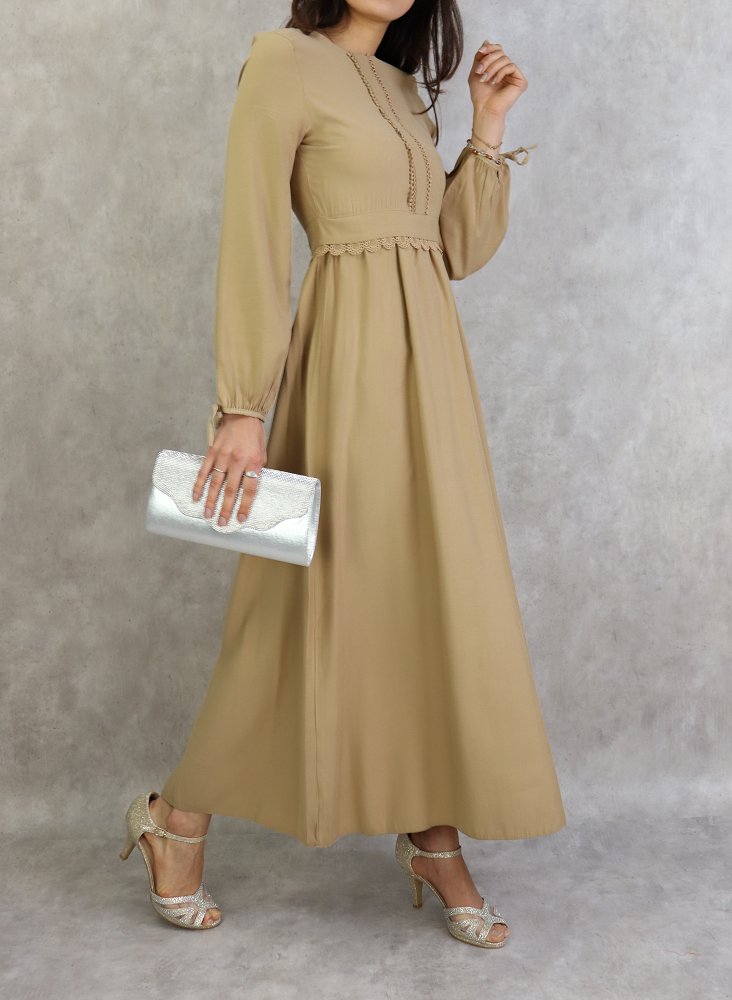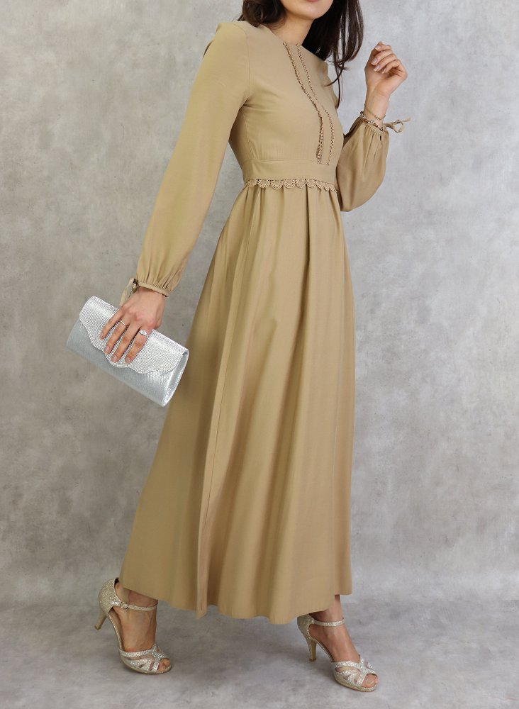 Robe longue classique et elegante pour femme - Couleur Beige