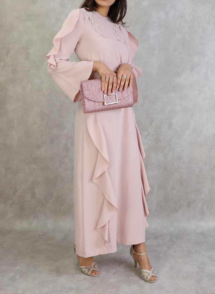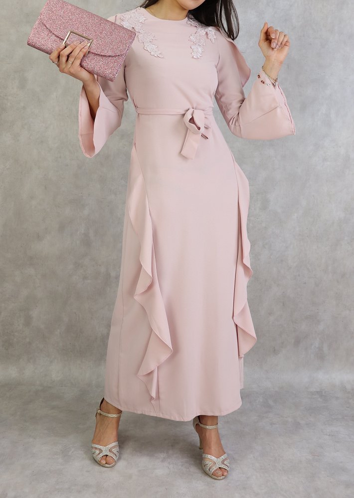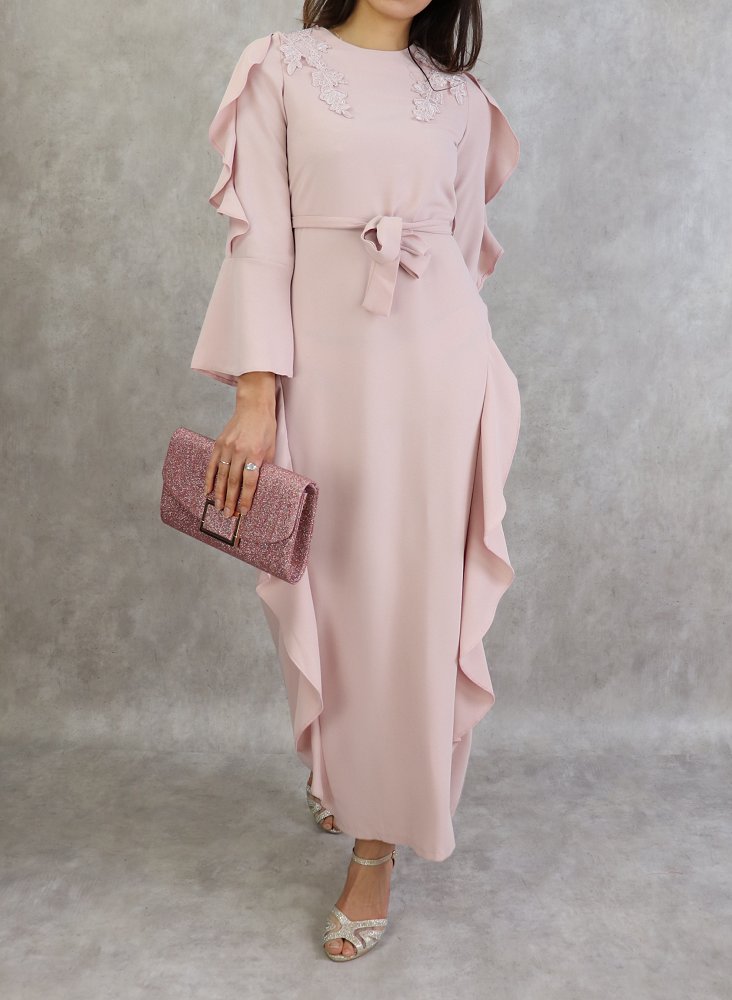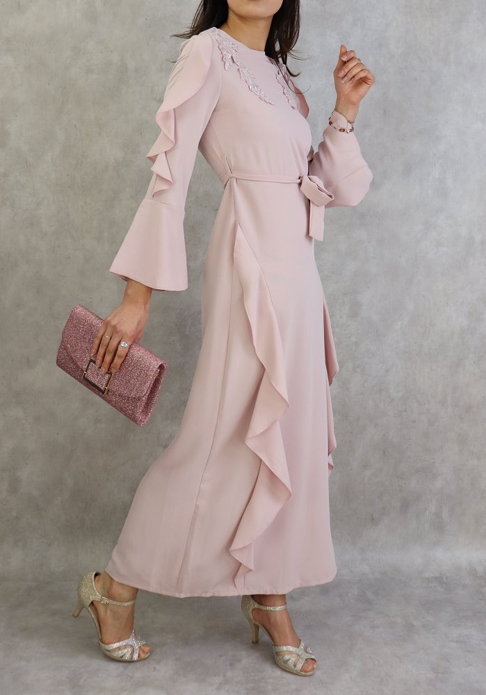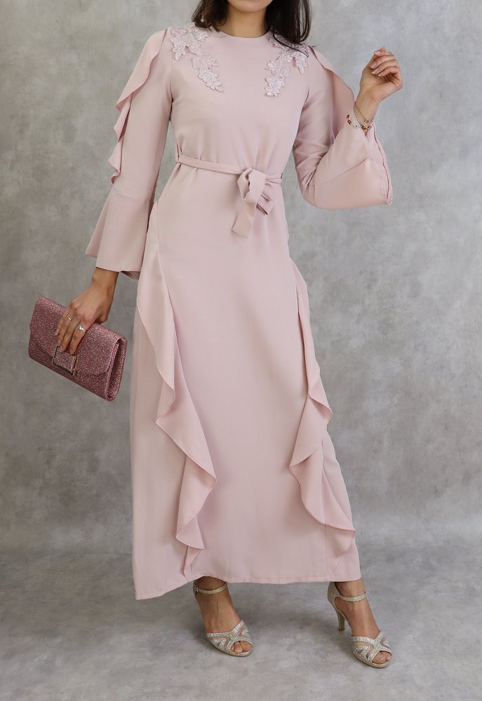 Robe longue à froufrous - Couleur Vieux rose clair Vetement & Accessoire