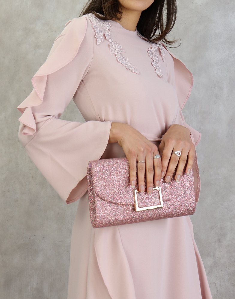 Robe longue évasée pailletée avec doublure et ceinture couleur rose clair - REF. 28304 (42.00 €)