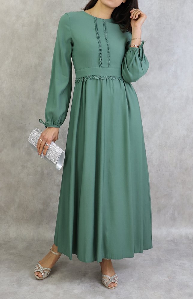 Robe longue classique et elegante pour femme - Couleur Vert celadon