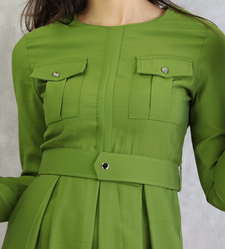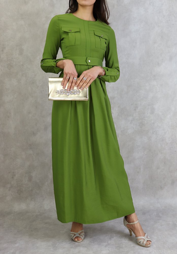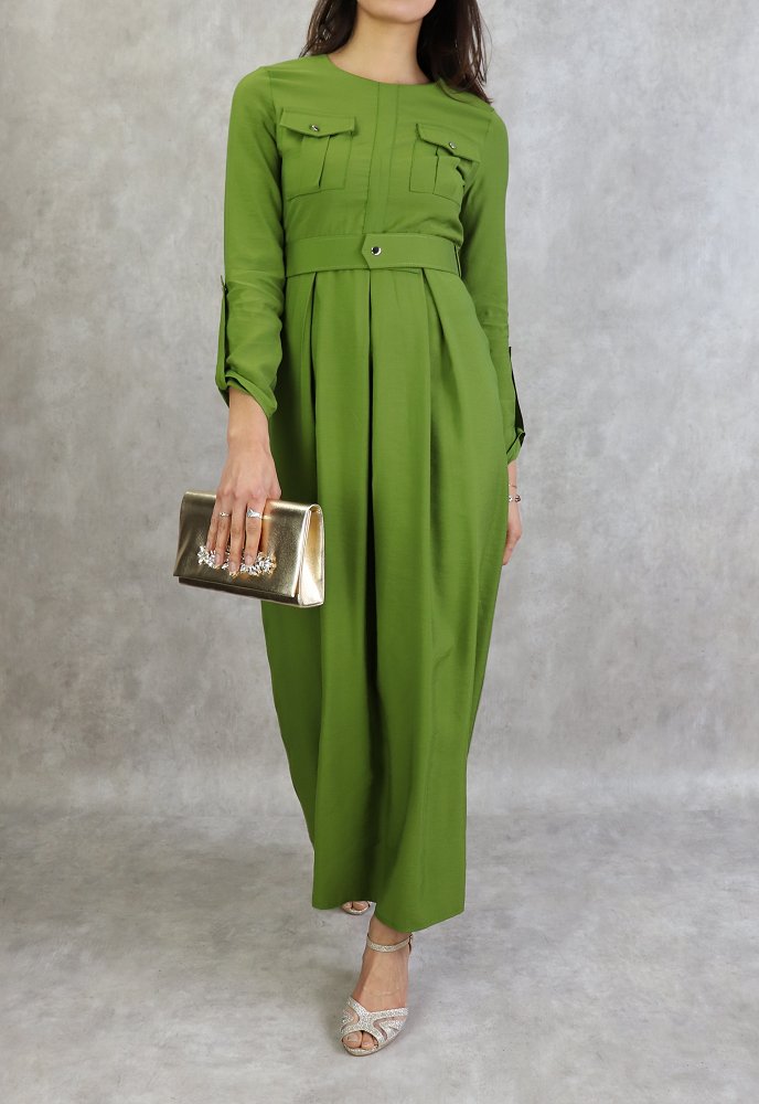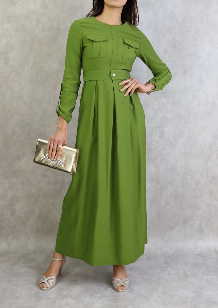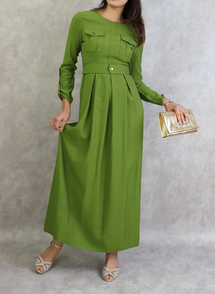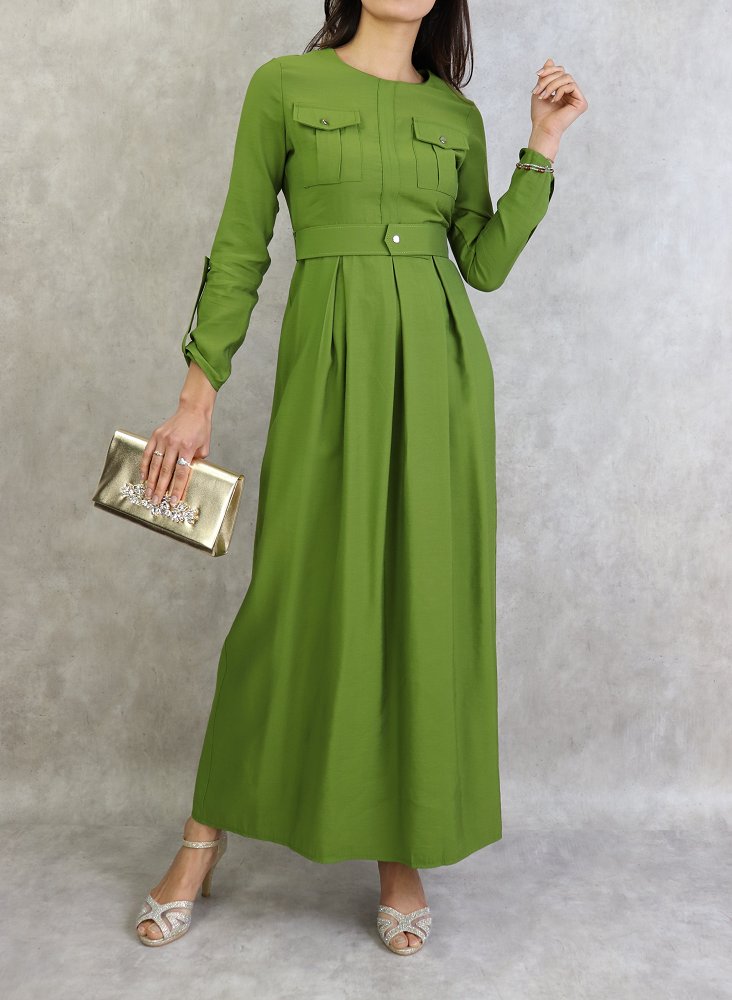 Robe longue avec ceinture large à pression (Vetement Turquie en ligne pour femme à Paris) - Couleur Vert Vetement & Accessoire